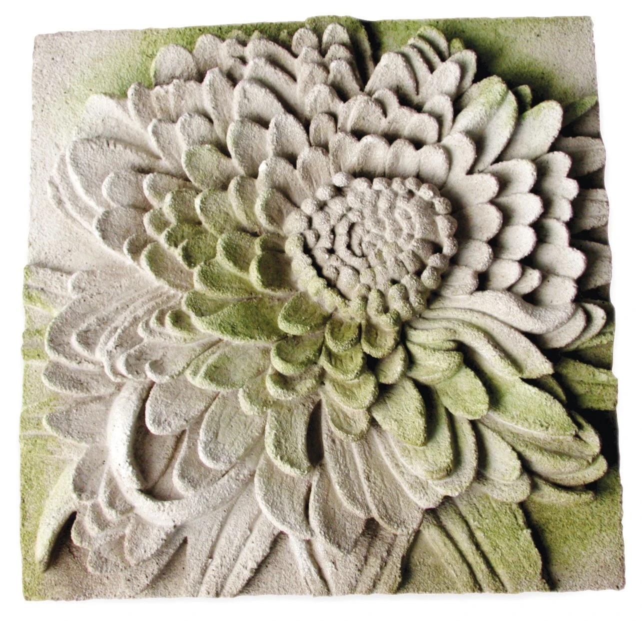 Crafted in the shape of a chrysanthemum and finished with a moss-like look, this plaque adds a little character to any garden.