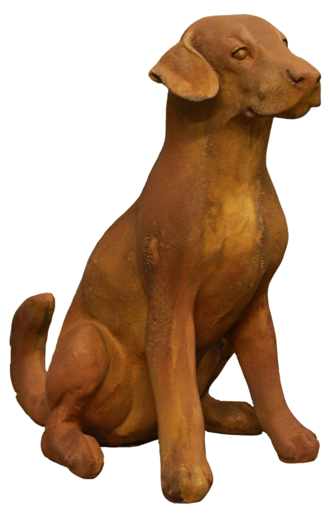This adorable puppy will stand guard in your garden, on the patio, or even inside your home. Crafted of Fiber Stone, in which sand and pebbles are cast into fiberglass to create the appearance of aged stone, it weighs much less than stone and is more durable than concrete. Made in the USA.