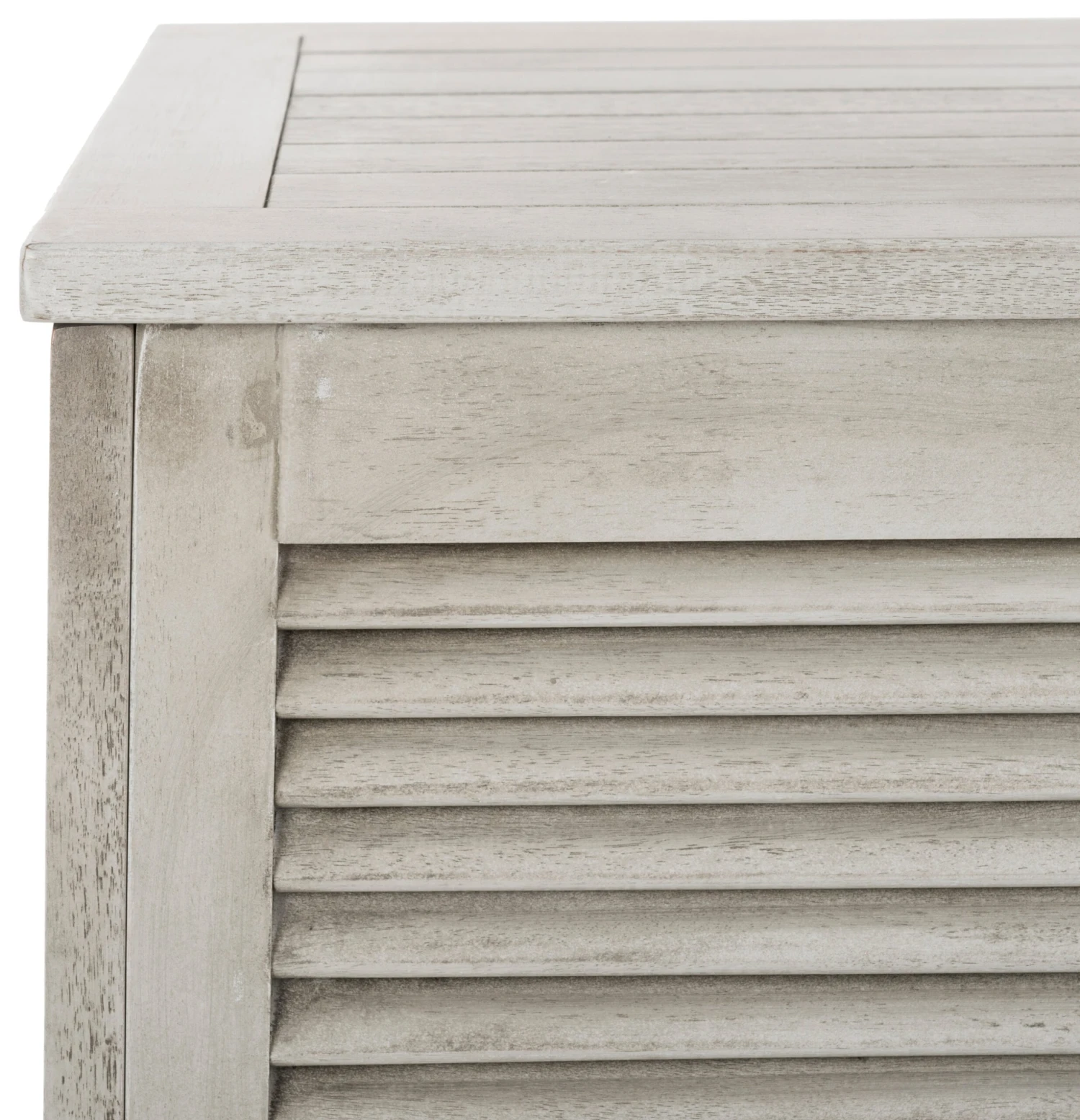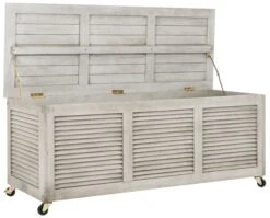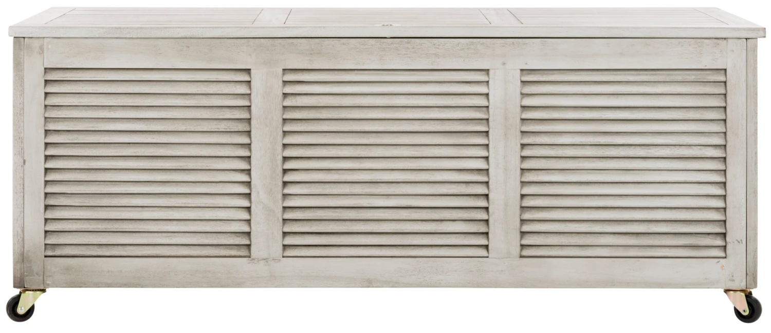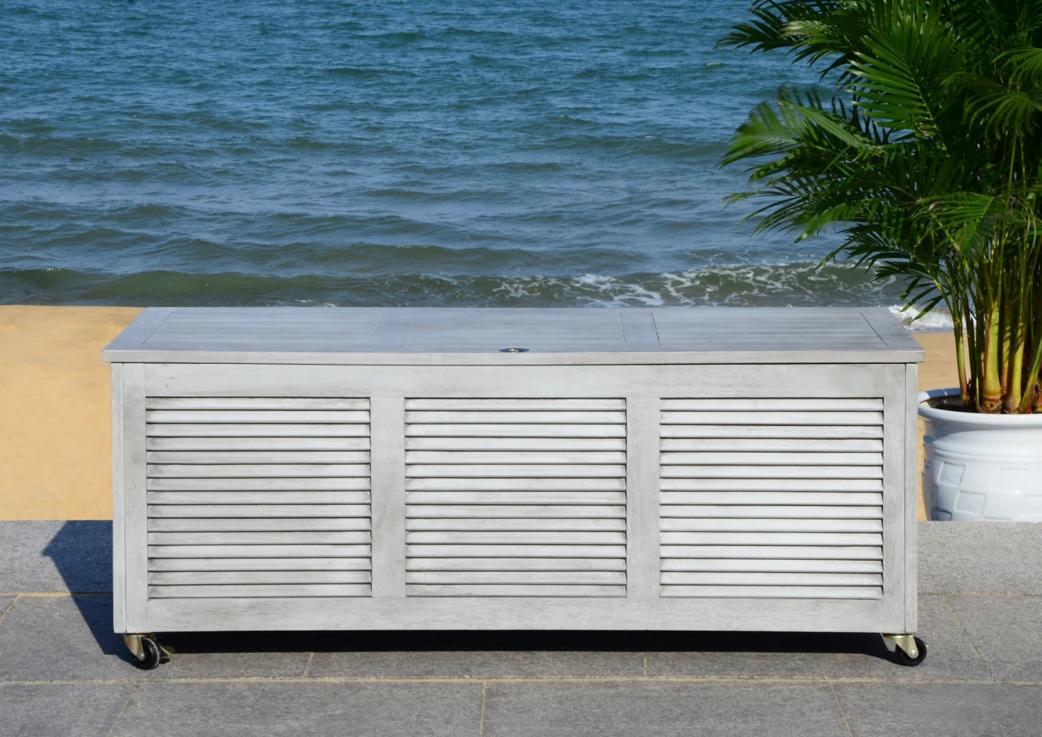 Crafted of eucalyptus with a slatted design and graywash finish, this storage box gives you a stylish option for storing outdoor cushions, pool equipment, and more. Eucalyptus is a wonderful wood for outdoor furniture; it’s extremely dense, rot- and decay-resistant, and also has a high oil content that naturally repels water and moisture.