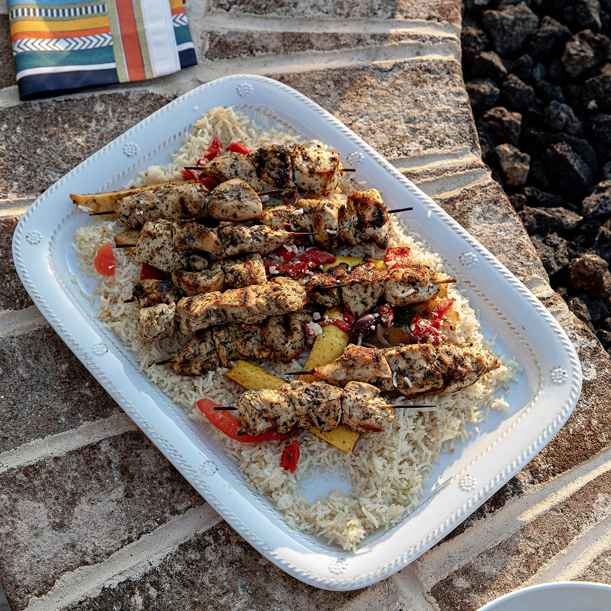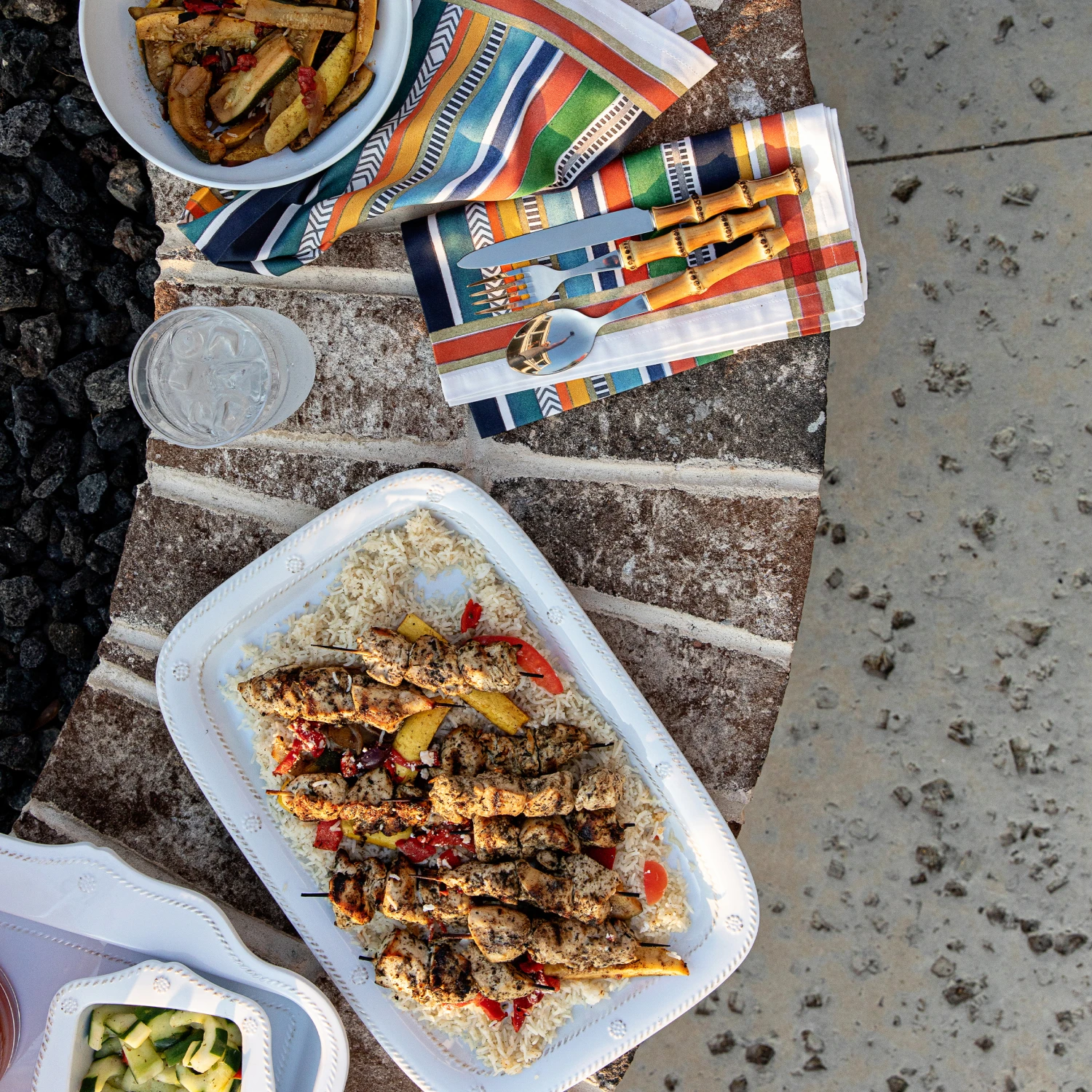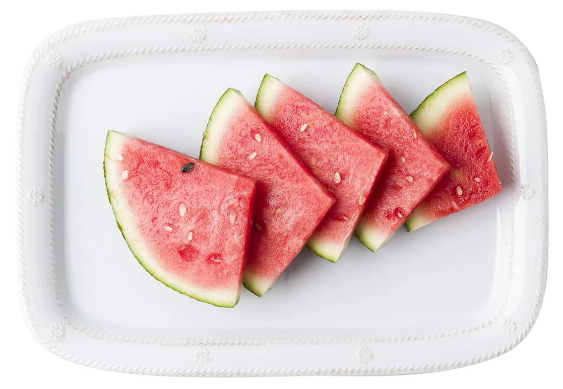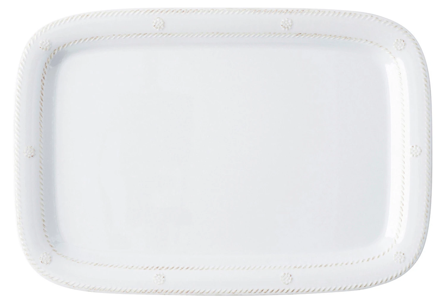 Finished with textural detailing and a sleek white finish, this serving tray is made of durable melamine, a virtually shatterproof material that’s conveniently dishwasher safe.
