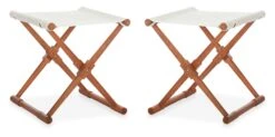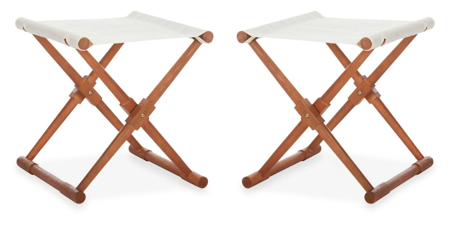 Made of eco-friendly and decay-resistant eucalyptus wood, these lightweight campaign-style stools provide extra seating anywhere you need it.