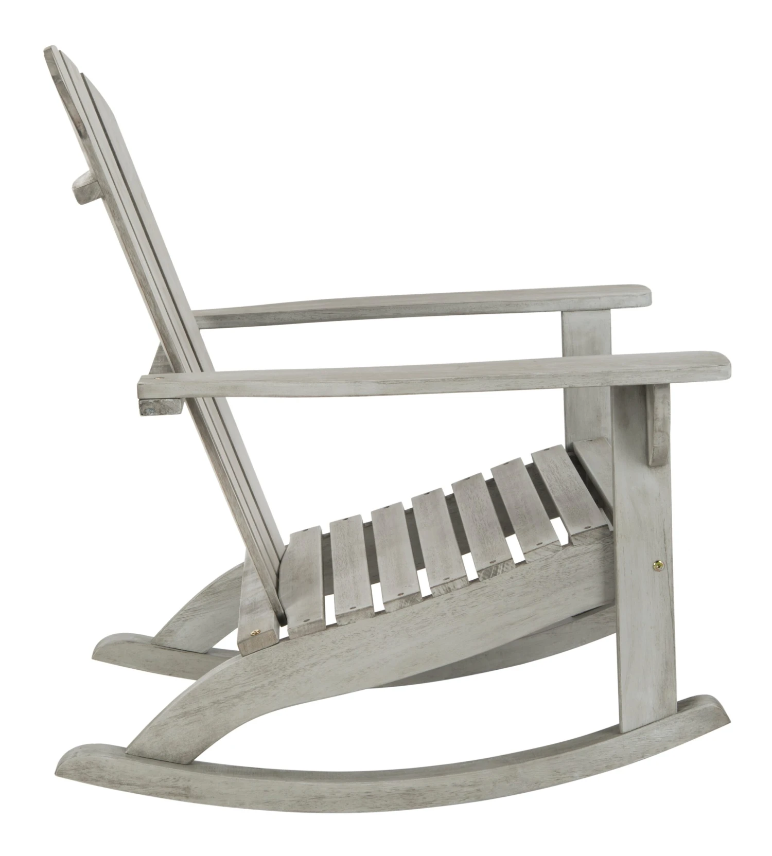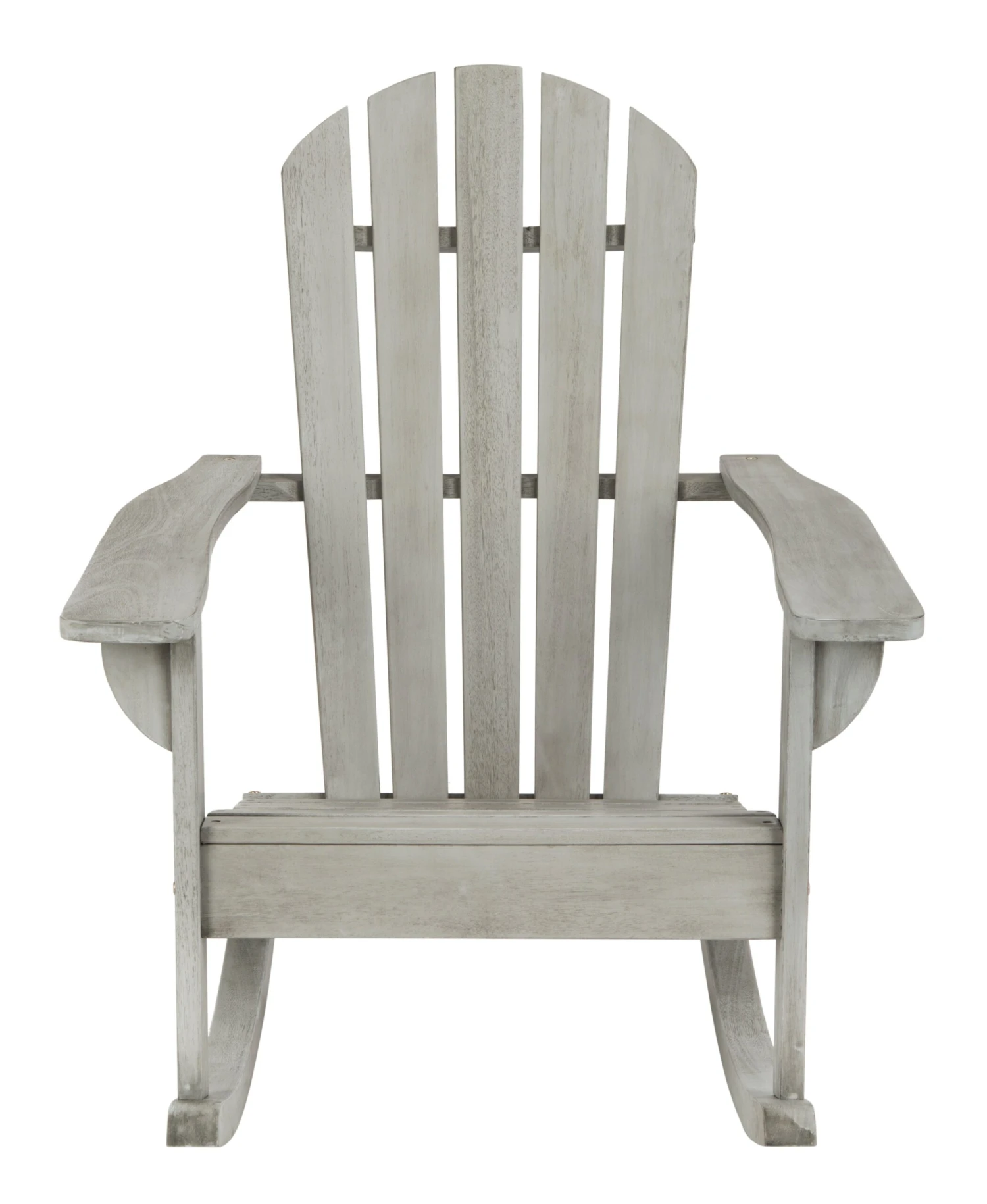 A timeless addition to the porch, patio, or deck, this Adirondack-style rocking chair is crafted entirely of eucalyptus with an angled design that promotes lounging and relaxation.