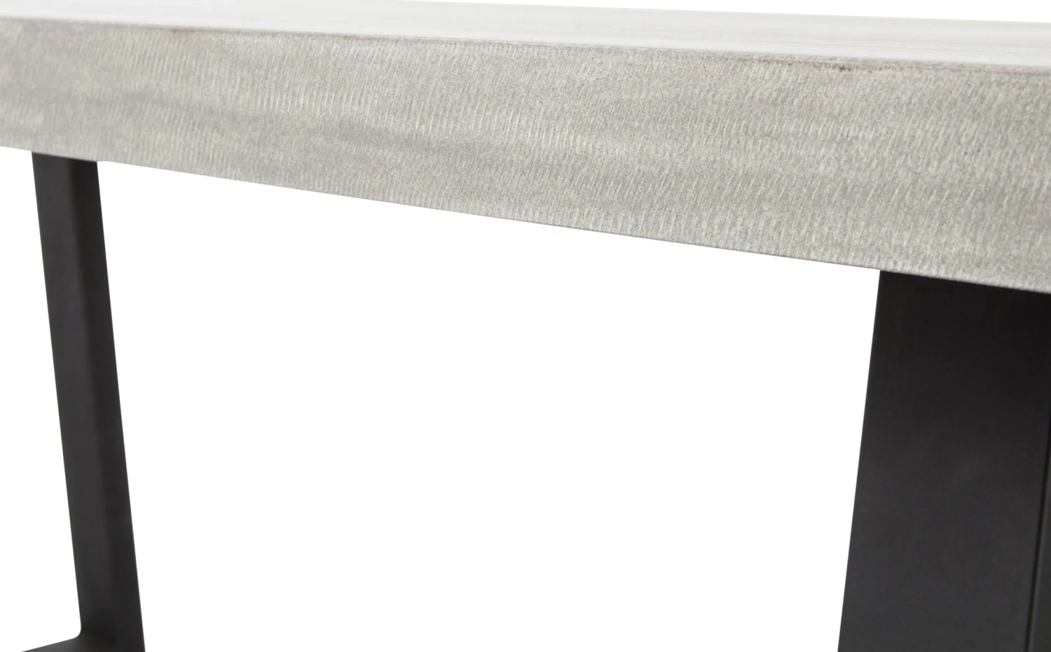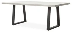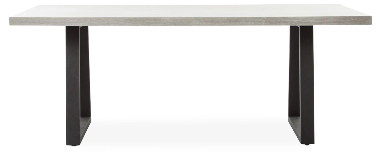 A stylish and practical addition to the porch, patio, or deck, this contemporary dining table is crafted of iron with an openwork base and lavastone top. Seats six to eight guests.
