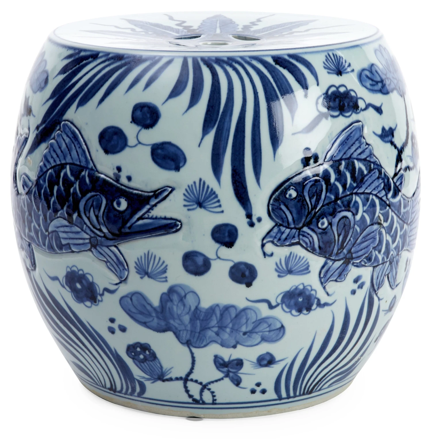 Chinese garden stools have become decor classics, in large part because of their versatility: They can serve as tables, stools, display pieces, and sculptural accents. This chic version features an elegant blue-and-white fish design.