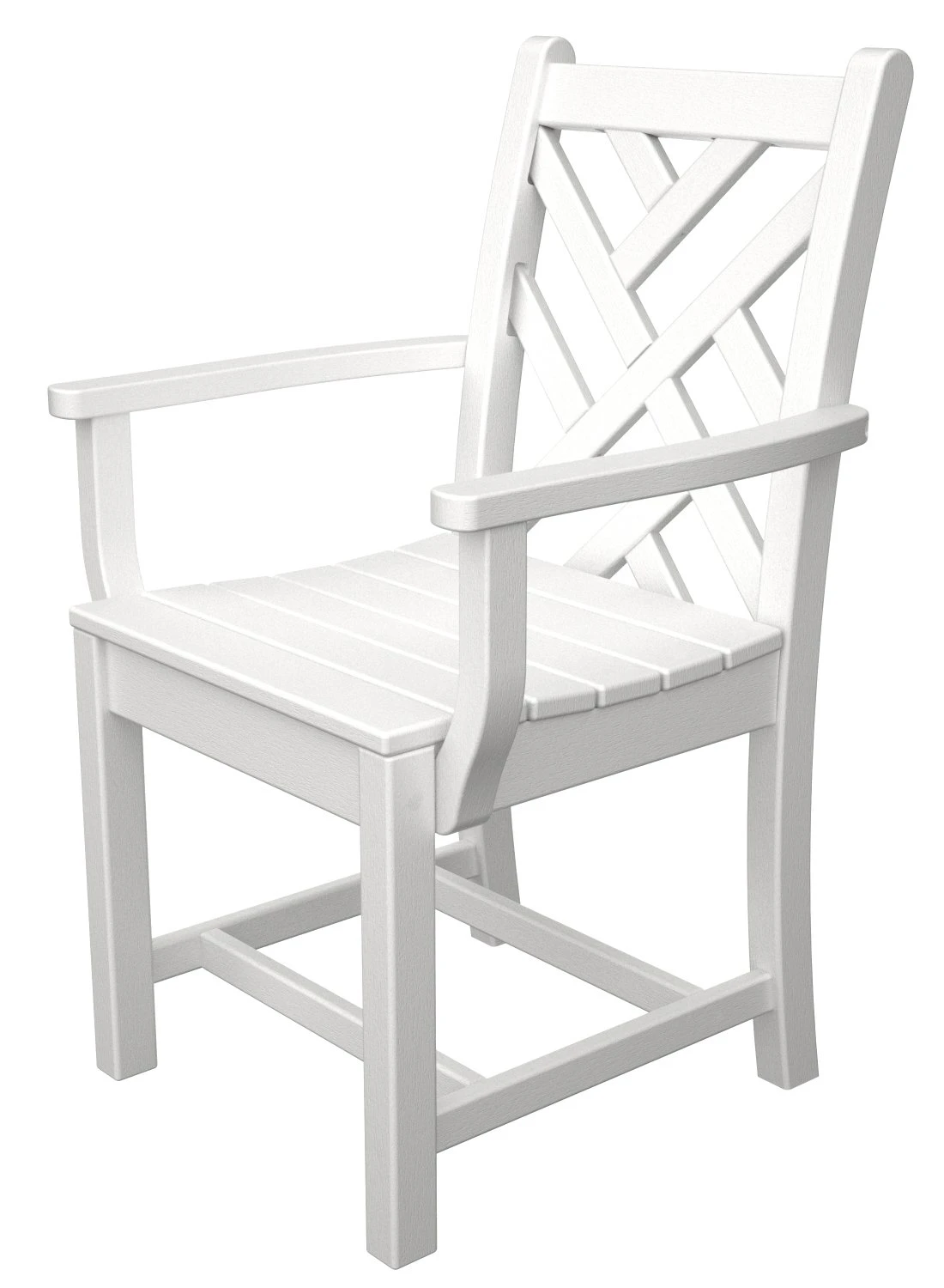 This Chippendale dining armchair has elegant cut-outs that add style to your outdoor dining set-up. A clean, white finish lends a country-chic vibe to the outdoors.