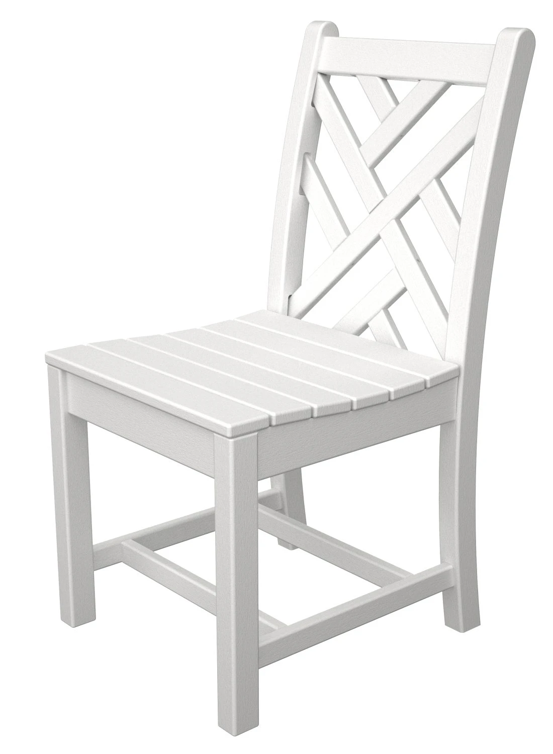 This Chippendale dining chair has elegant cut-outs that add style to your outdoor dining set-up. A clean, white finish lends a country-chic vibe to the outdoors.