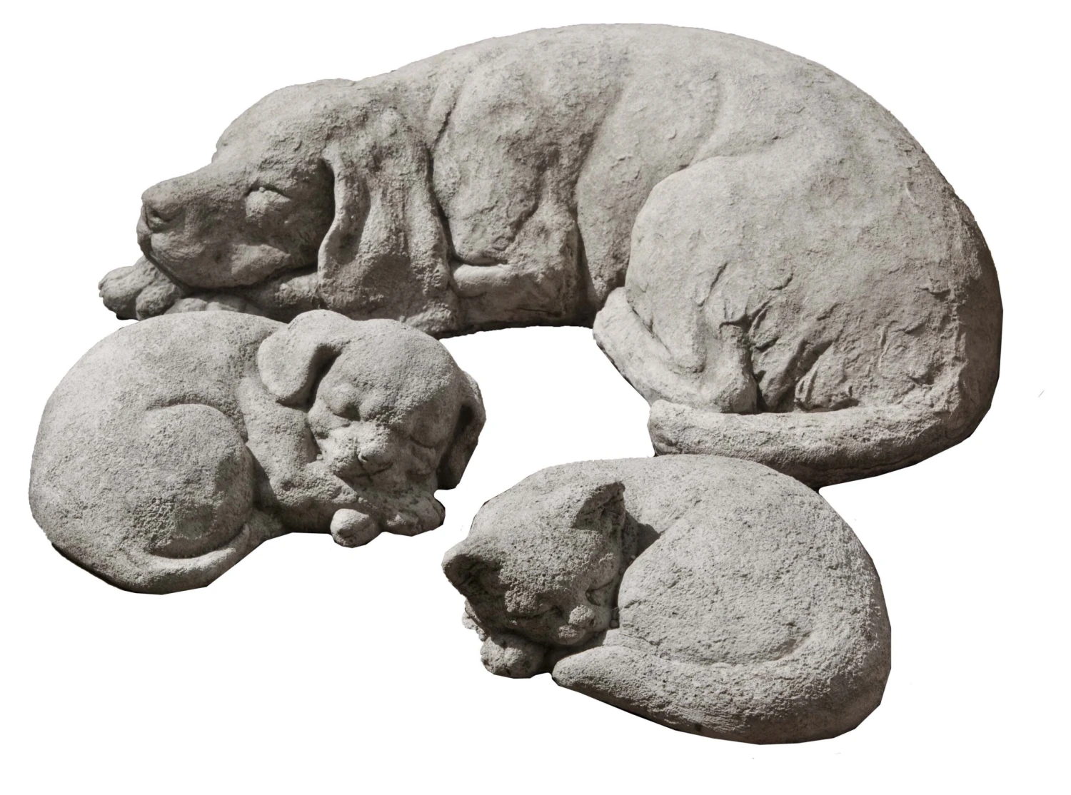 Artisan-crafted of cast stone, this sleeping cat accent adds a charming note to the porch, patio, or garden. Made in the USA.