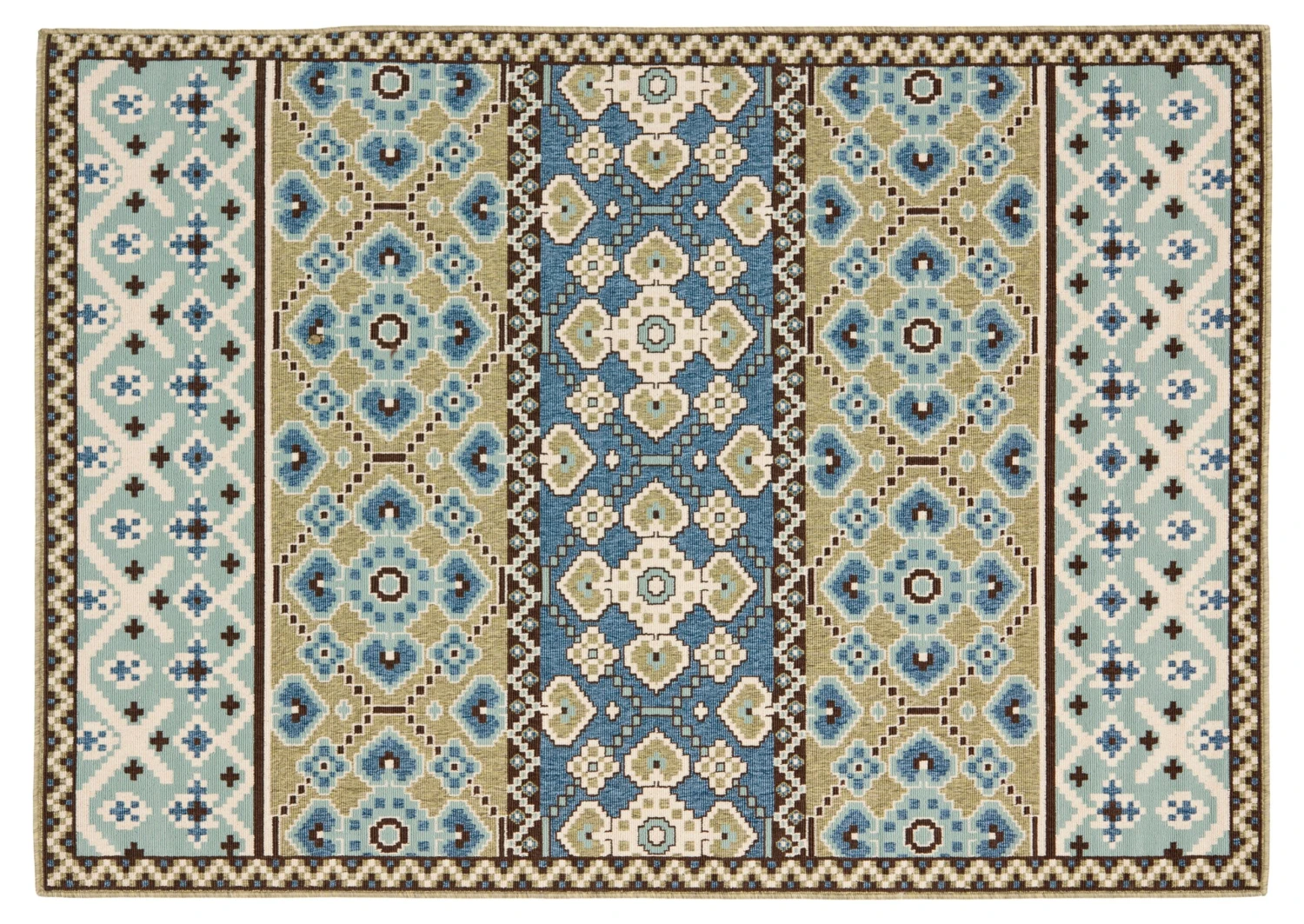 Style with staying power: This boldly patterned outdoor rug is made of durable polypropylene, an easy-to-clean material that can withstand the elements and resists wear and tear. Perfect for use on the porch or patio, it can also be brought indoors to protect flooring in high-traffic areas.