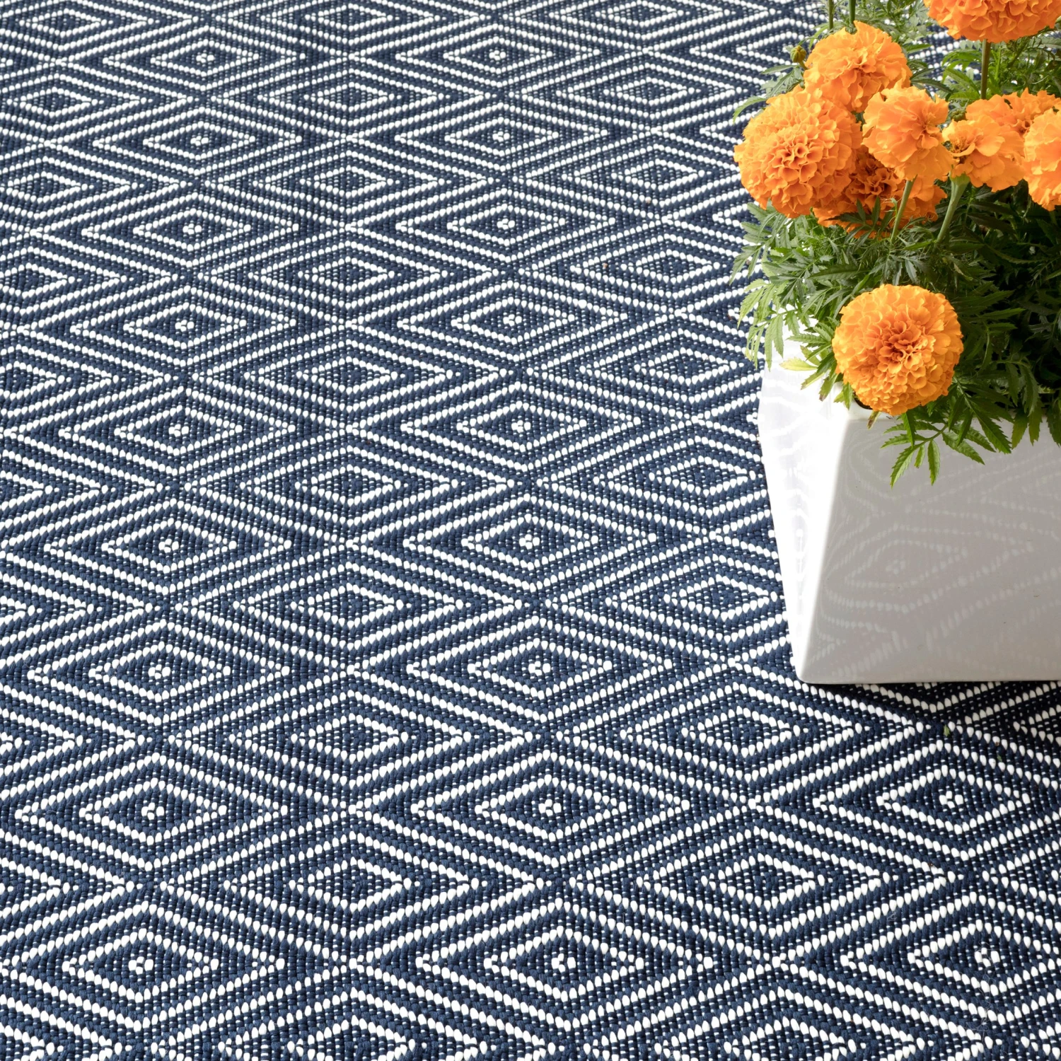 Featuring a graphic design, this rug is made of durable polypropylene, an easy-to-clean material that can withstand the elements and resists wear and tear. Perfect for use on the porch or patio, it can also be brought indoors to protect flooring in high-traffic areas. We recommend a rug pad to extend the life of the rug and keep it securely in place.
