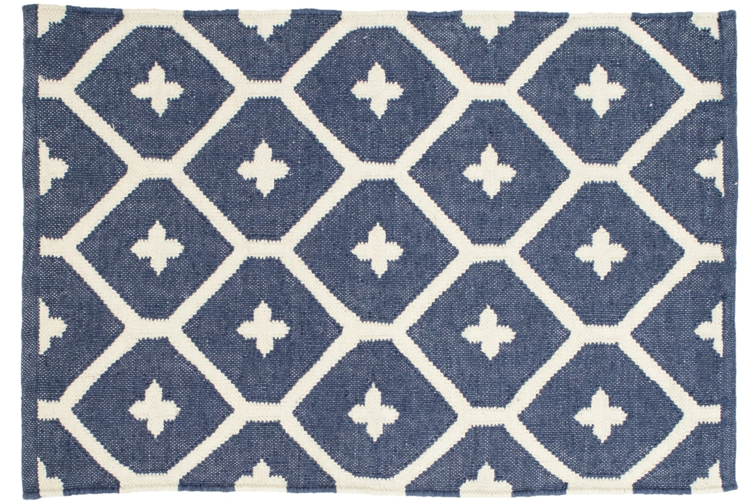 Crafted from UV-treated recycled plastic and handwoven with a bold geometric design in navy, this eco-friendly rug adds a refreshing touch of contemporary style to any indoor or outdoor space. We recommend a rug pad to extend the life of your rug and keep it securely in place.