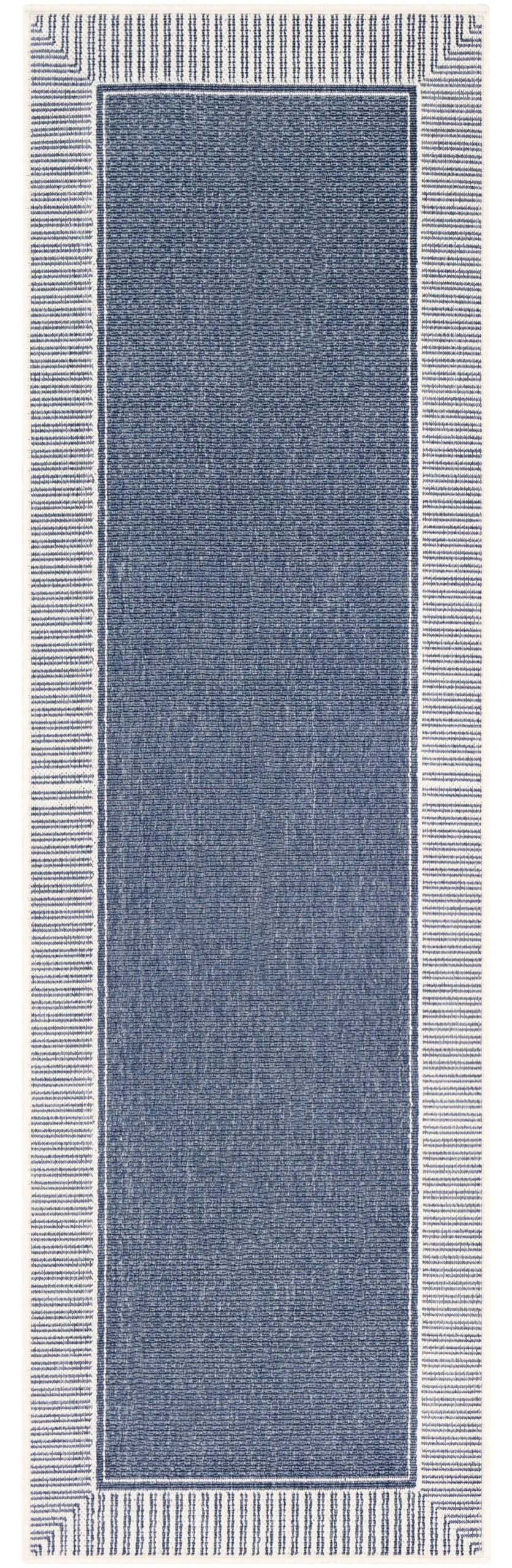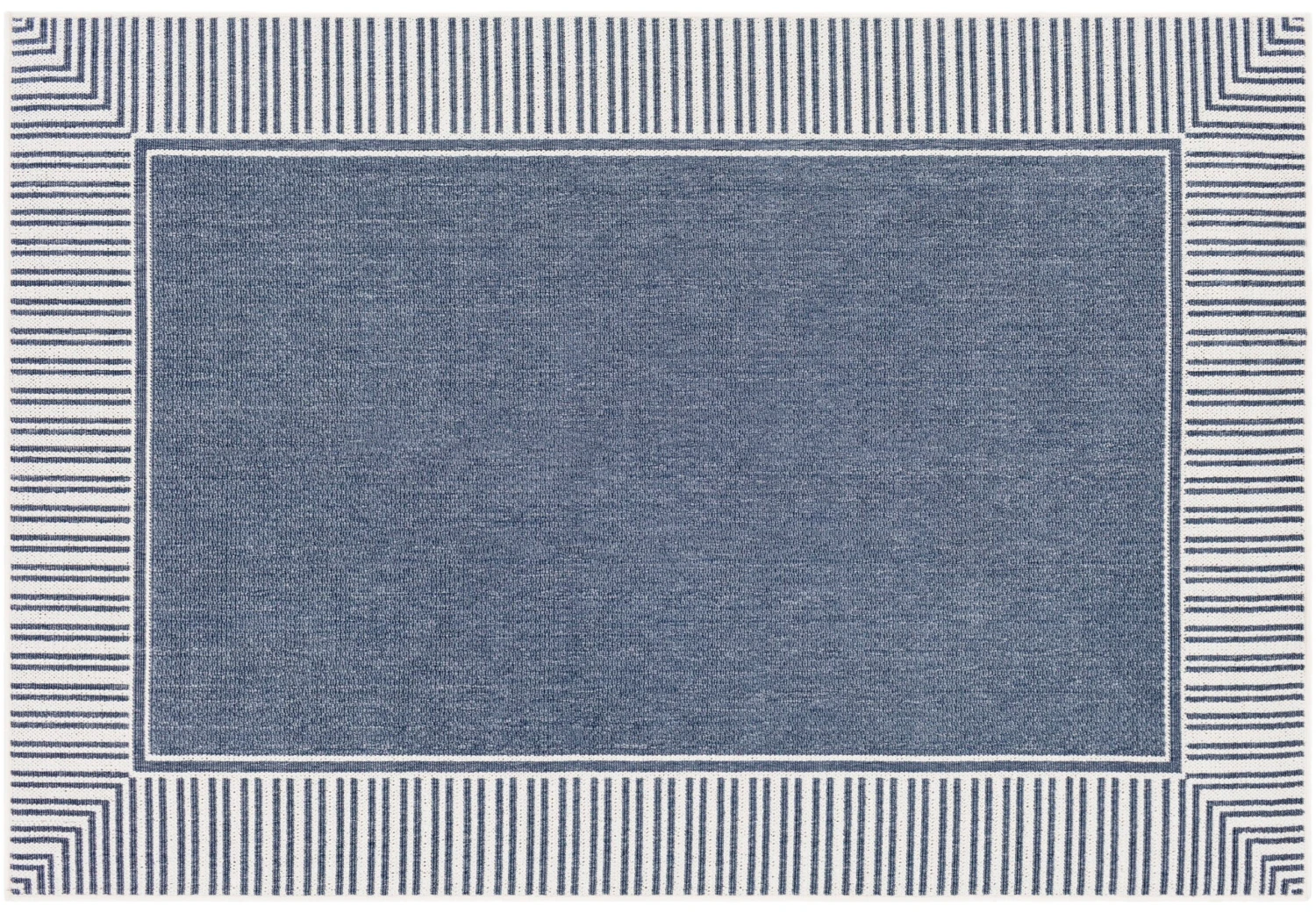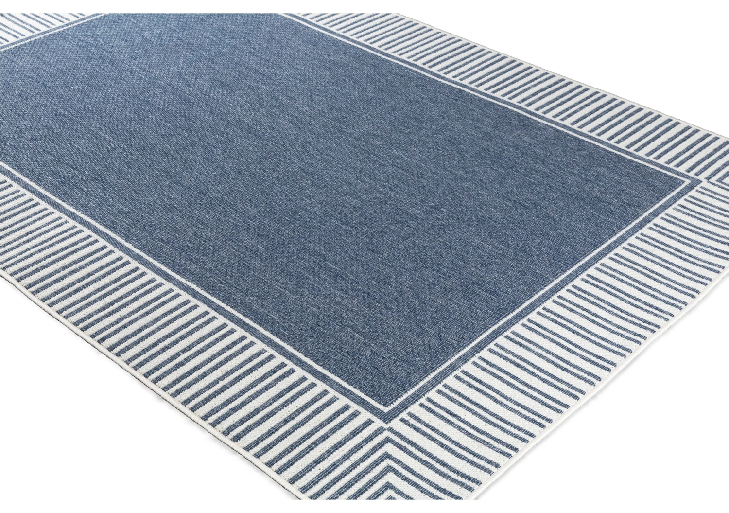 Framed with a coordinating striped border, this outdoor rug is made of durable polypropylene, an easy-to-clean material that can withstand the elements and resists wear and tear. Perfect for use on the porch or patio, it can also be brought indoors to protect flooring in high-traffic areas.