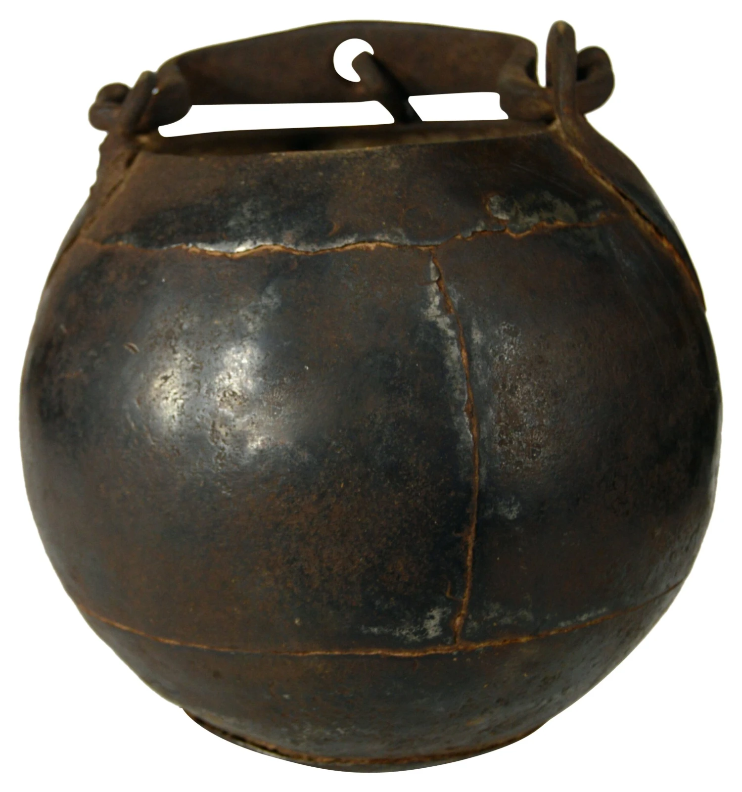 Antique hand-hammered iron bucket from India. May vary slightly from the bucket shown in image. No maker’s mark. Age wear, oxidation.