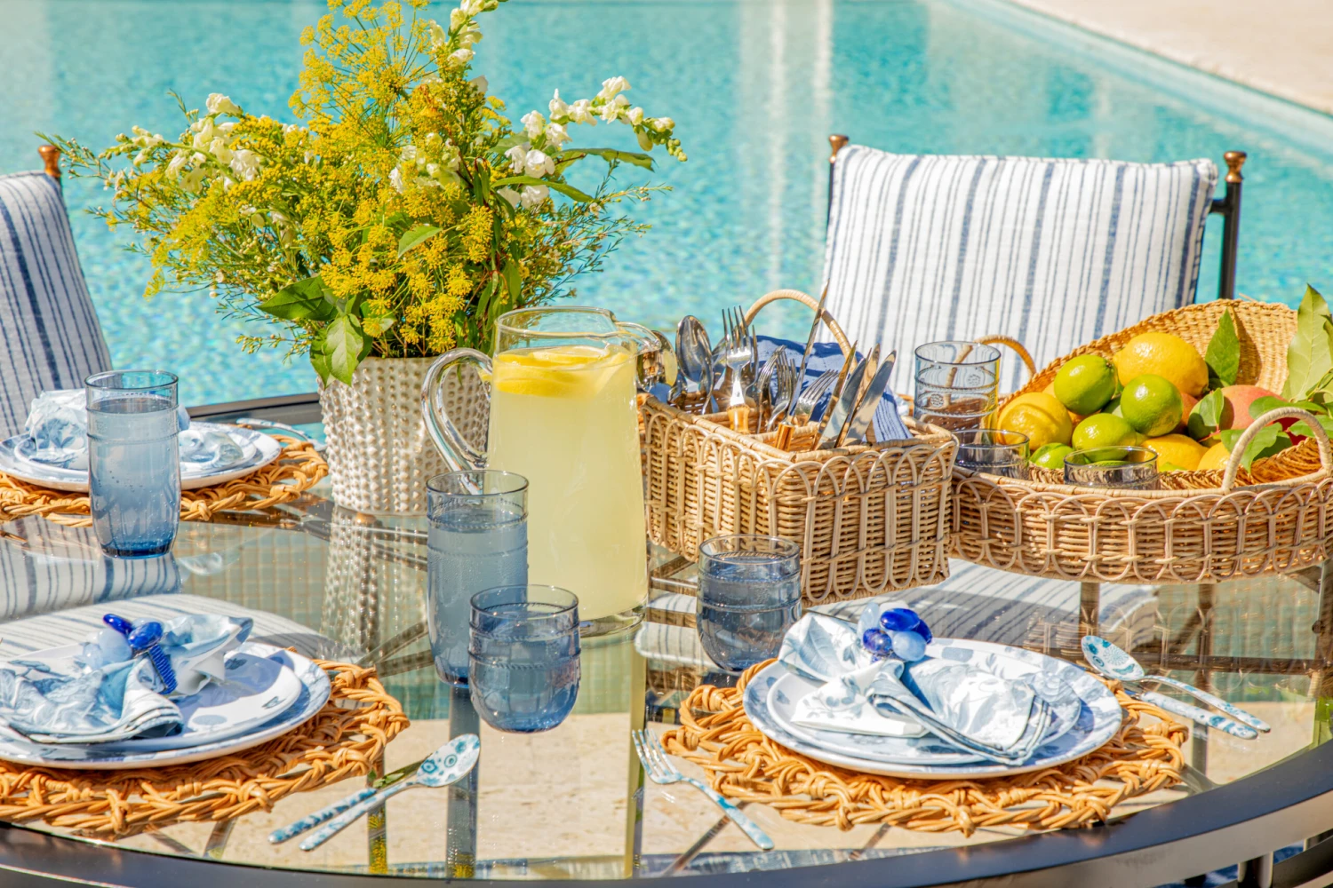 Crafted of blue acrylic and beautifully detailed, this versatile tumbler is nearly shatterproof, making it ideal for use indoors and out.