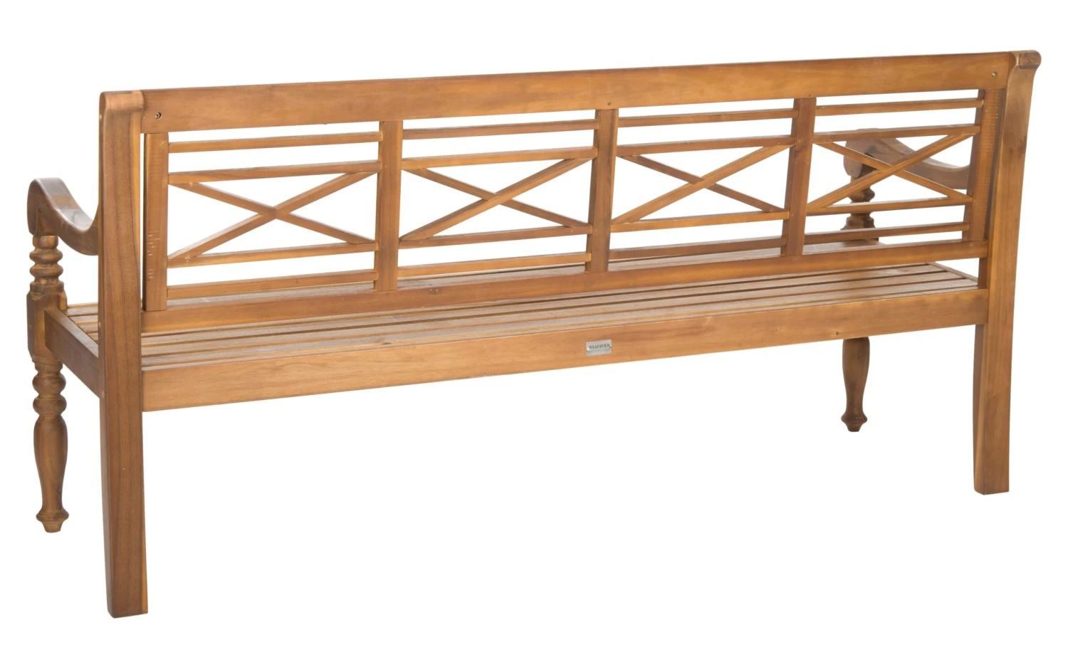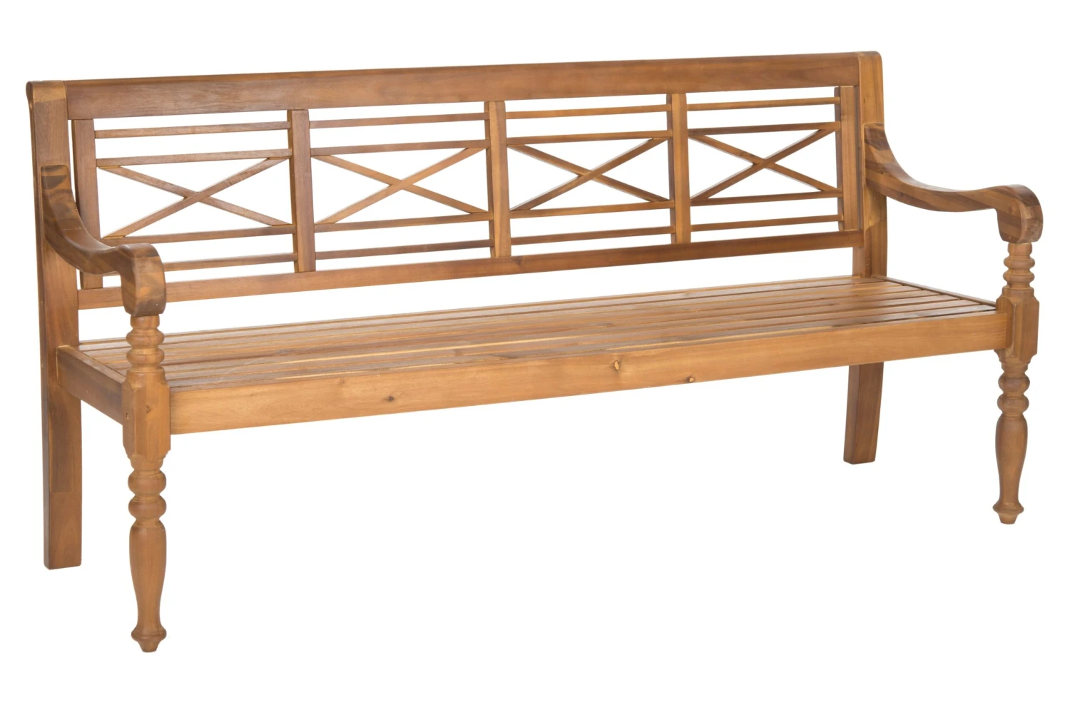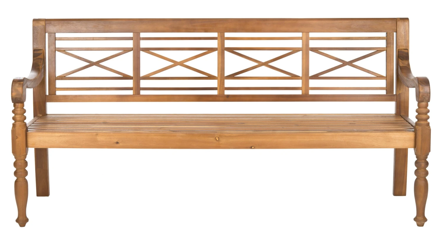 Nearly six feet wide, this teak-finish bench is crafted from durable acacia and galvanized steel, so it can withstand even the harshest elements.