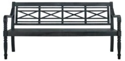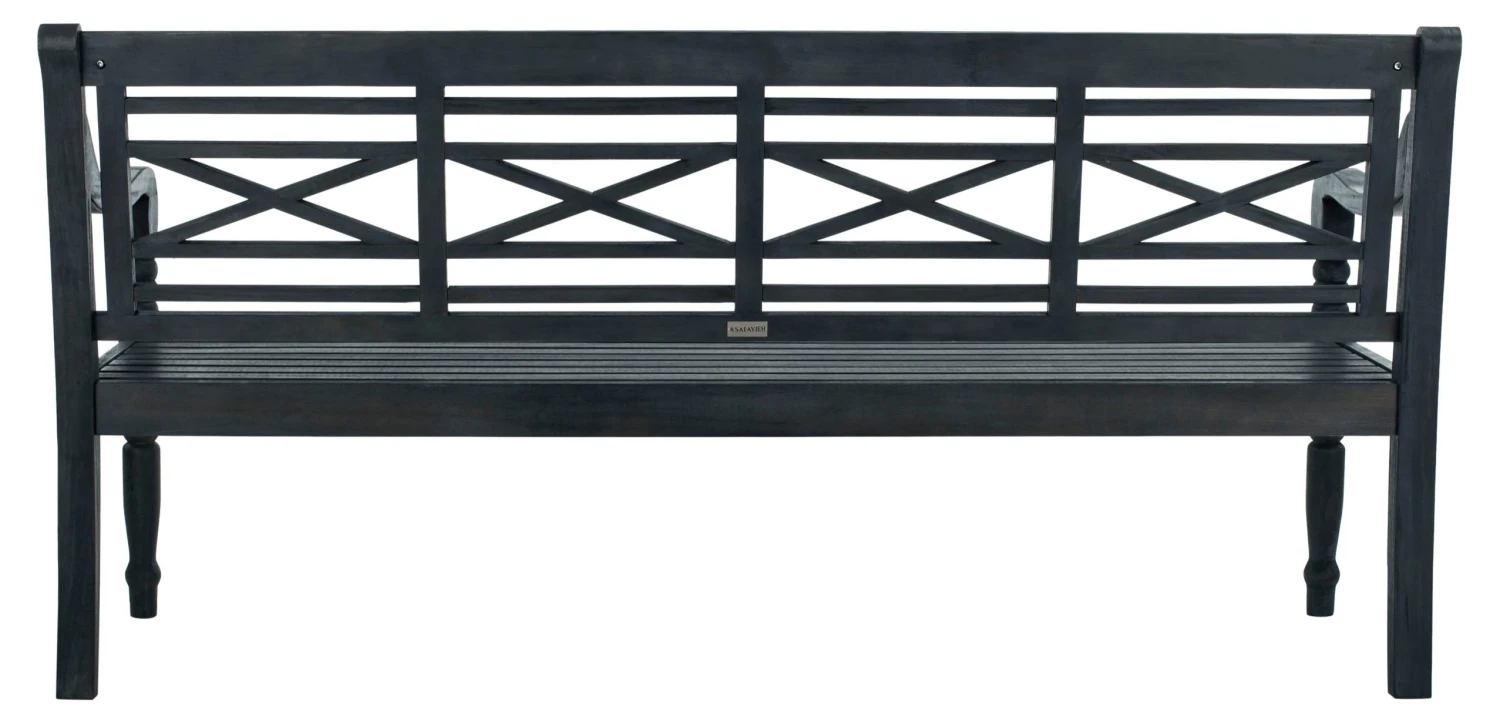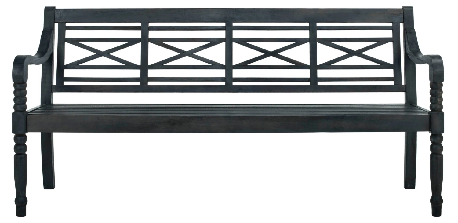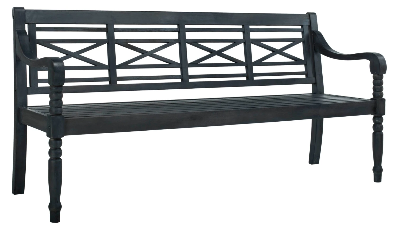 A lovely addition to any porch or patio, this versatile bench is crafted of acacia with turned legs, a beautifully designed back, and dark slate-gray finish.