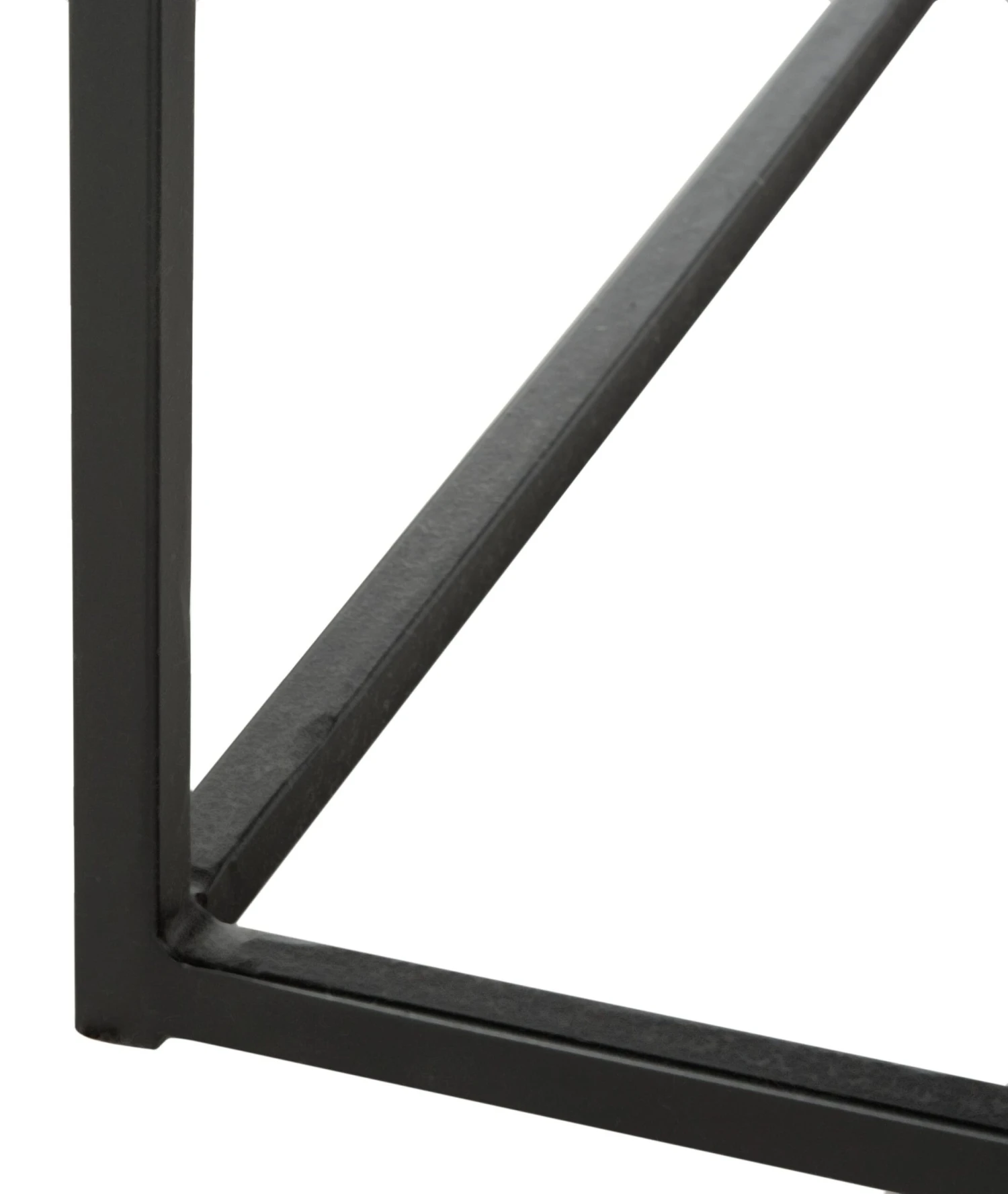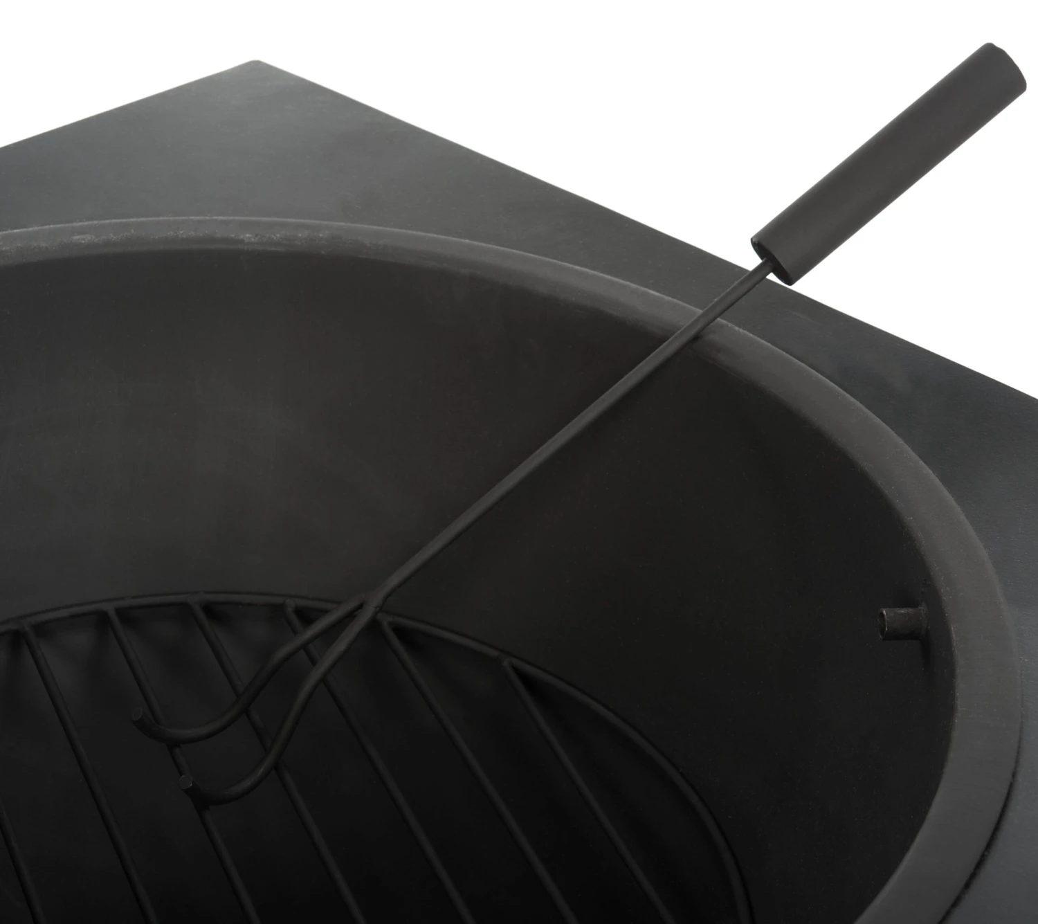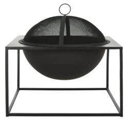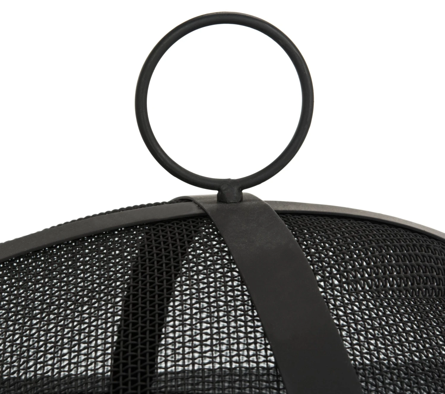 Perfect for enjoying cool nights outdoors, this wood-burning fire pit is crafted of black iron with an open, geometric base and removable protective screen top.