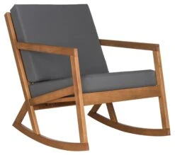 Framed in richly figured acacia coated in a warm brown finish, this clean-lined rocking chair feels right at home on the porch or pool deck. Topped with a gray seat cushion for added style and support.