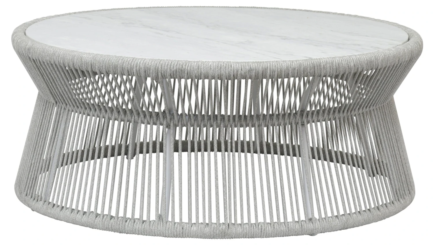 Enjoy the great outdoors in high style with this durable coffee table, designed with a powder-coated aluminum frame wrapped in premium all-weather, striated acrylic rope and topped with granite.