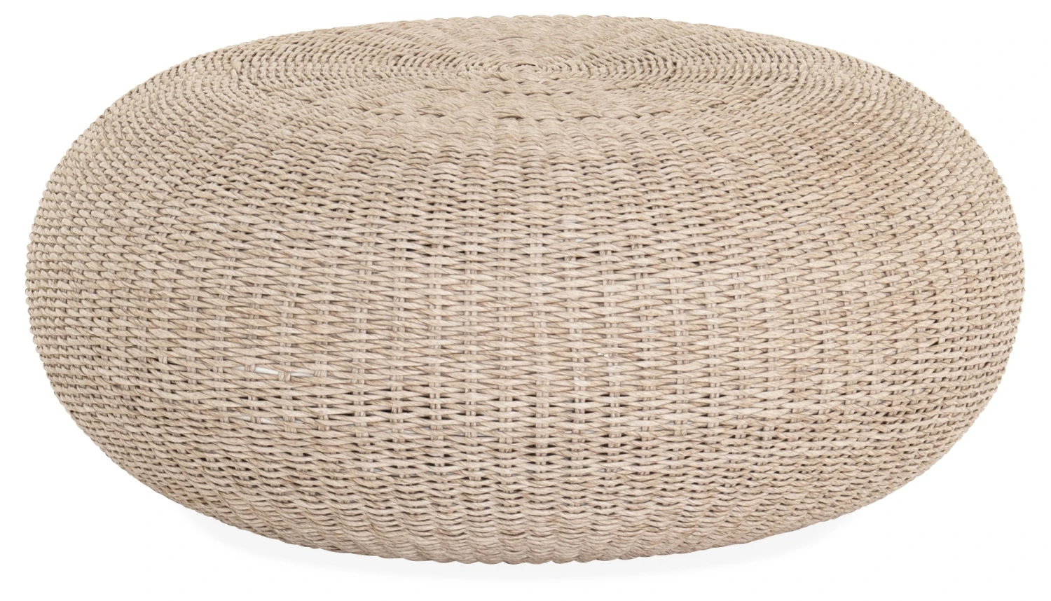 A stylish and practical addition to the porch, patio, or deck, this synthetic wicker-wrapped coffee table is framed in aluminum with a shapely silhouette and natural finish.