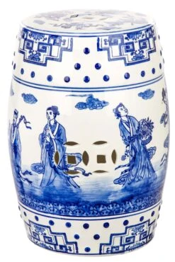 This garden stool is crafted of ceramic with classic chinoiserie motifs in blue and white. A versatile piece indoors or out, we love it as a side table, plant stand, or stool.