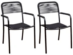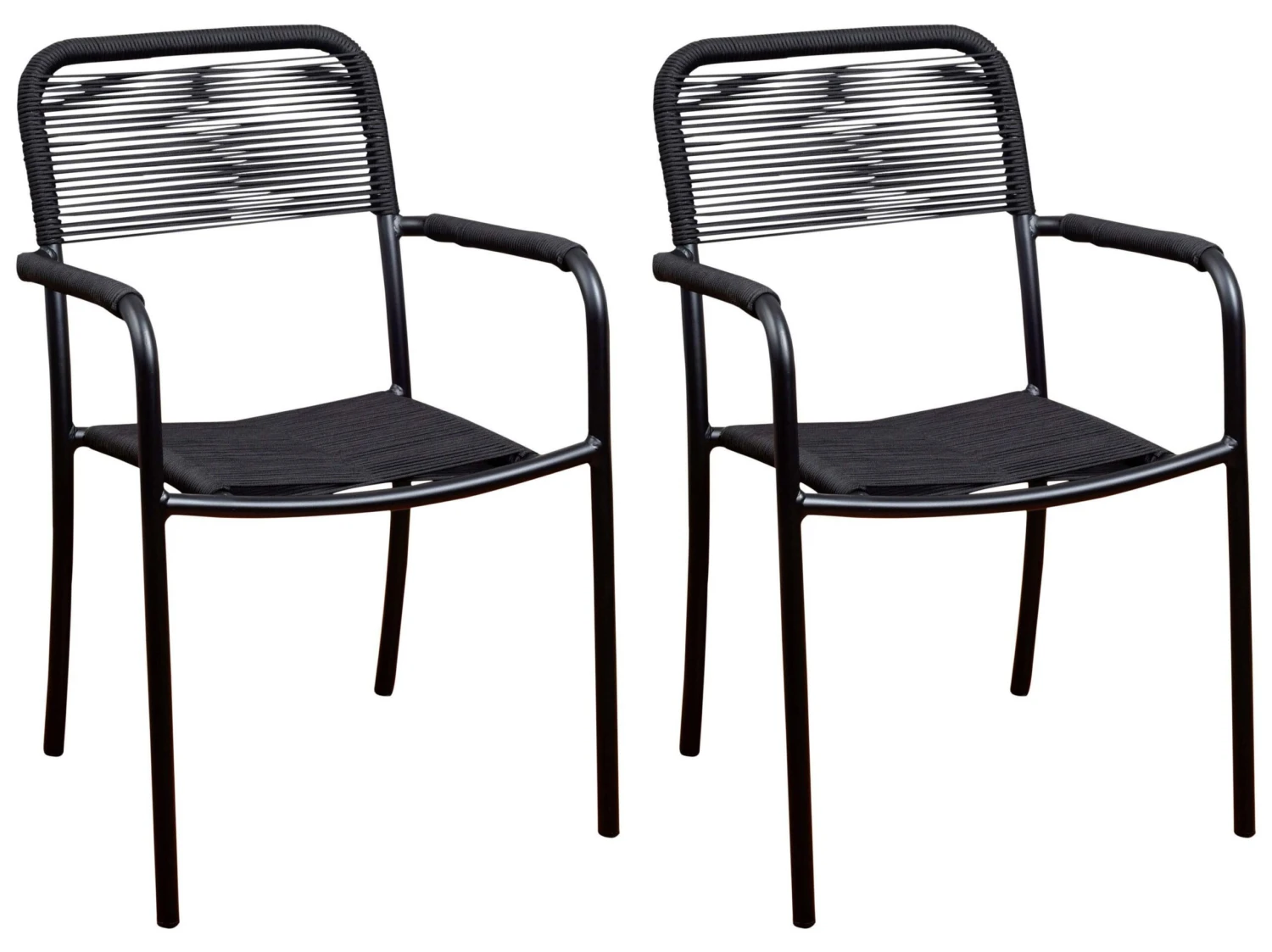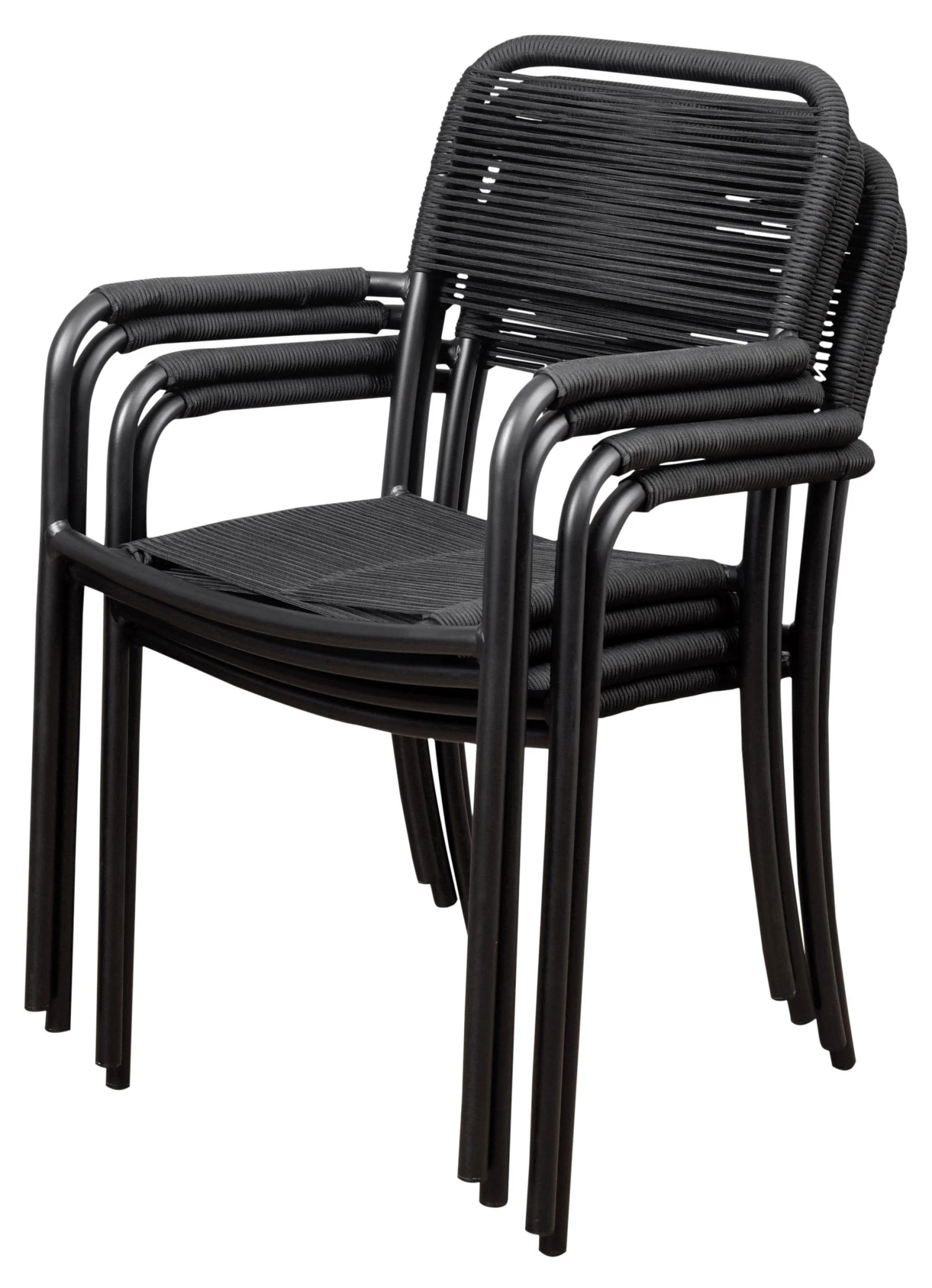 Simple and lightweight in a conveniently stackable design, these armchairs are perfect for outdoor use with their rust-resistant aluminum frames and taut rope seats and backs, all of which are coated in Duracoat, a polymer-based, multilayer coating that ensures protection from the elements.