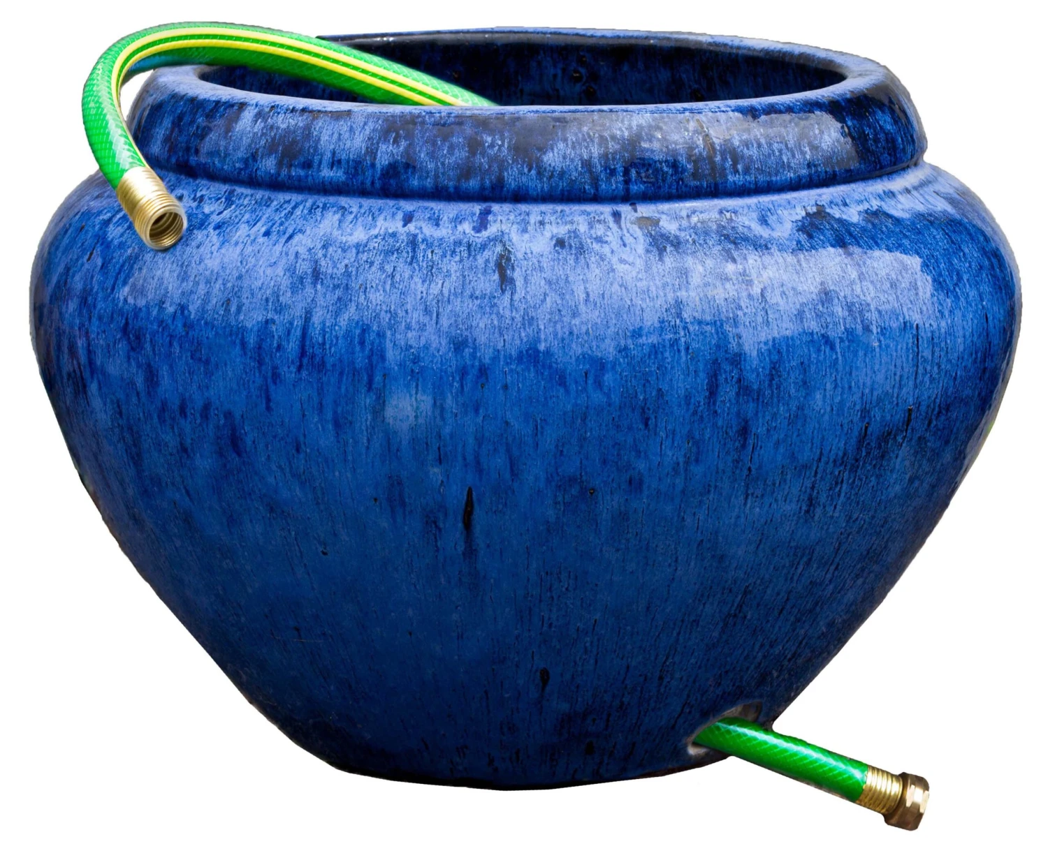 A lovely addition to your favorite outdoor space, this hose pot is artisan-crafted of glazed terracotta with a simple form and gorgeous blue finish. Hose not included.