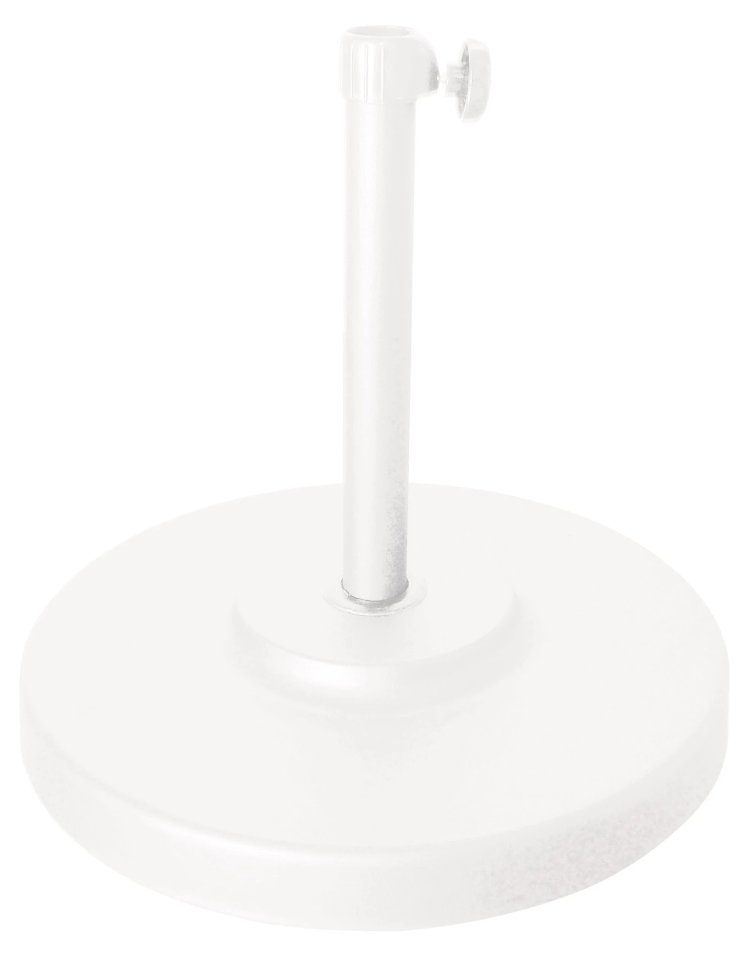 Made of powder-coated steel, this 50-pound concrete-filled umbrella base is sturdy, strong, and designed to keep your umbrella steadily anchored to the ground.