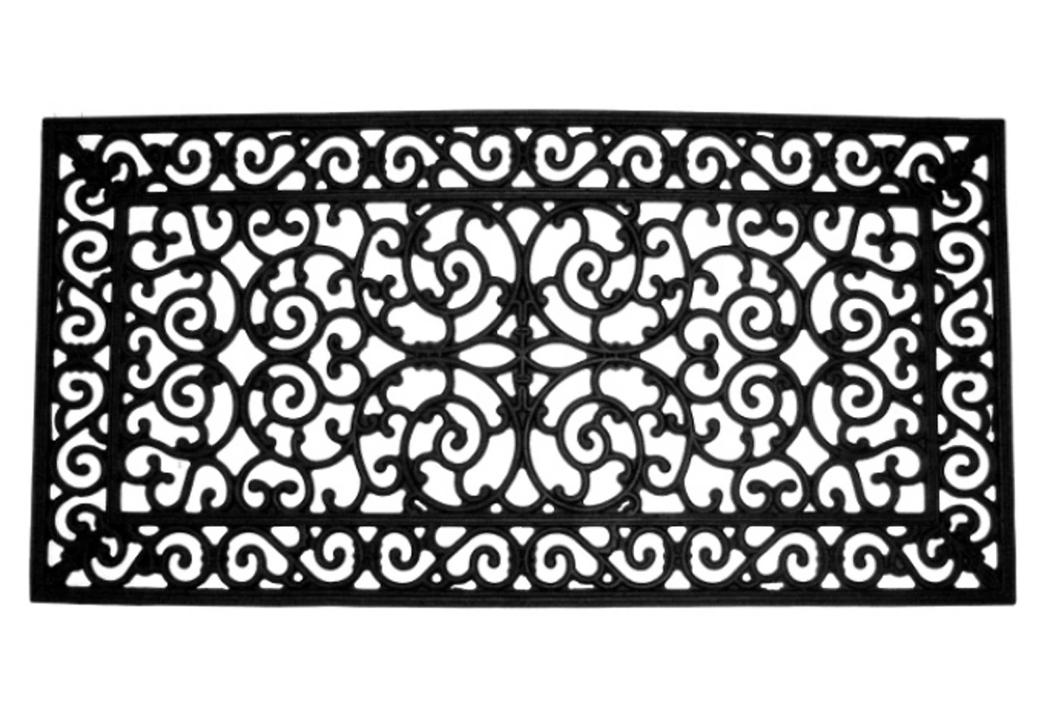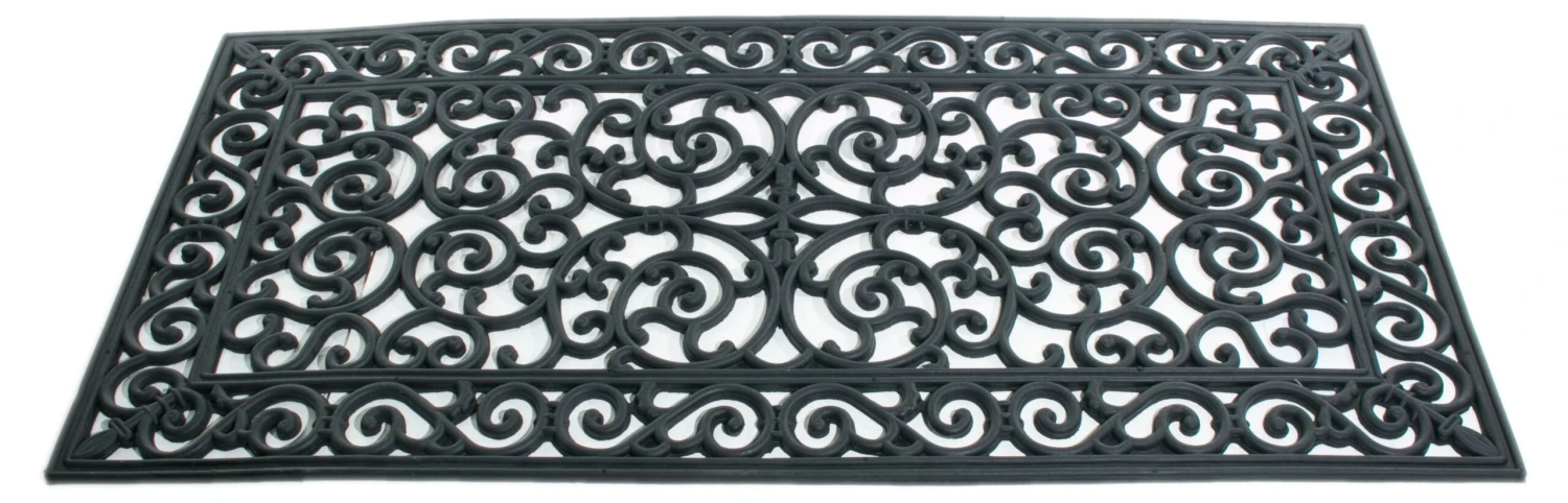 Perfect for welcoming guests at the front or back door, or for poolside safety, this mat made from vulcanized natural rubber and recycled rubber mimics the look of wrought iron with a stylish openwork design.