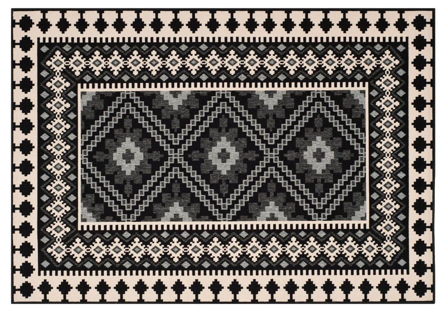 Featuring a dynamic tribal-inspired design, this outdoor rug is made of durable polypropylene, an easy-to-clean material that can withstand the elements and resists wear and tear. Perfect for use on the porch or patio, it can also be brought indoors to protect flooring in high-traffic areas.