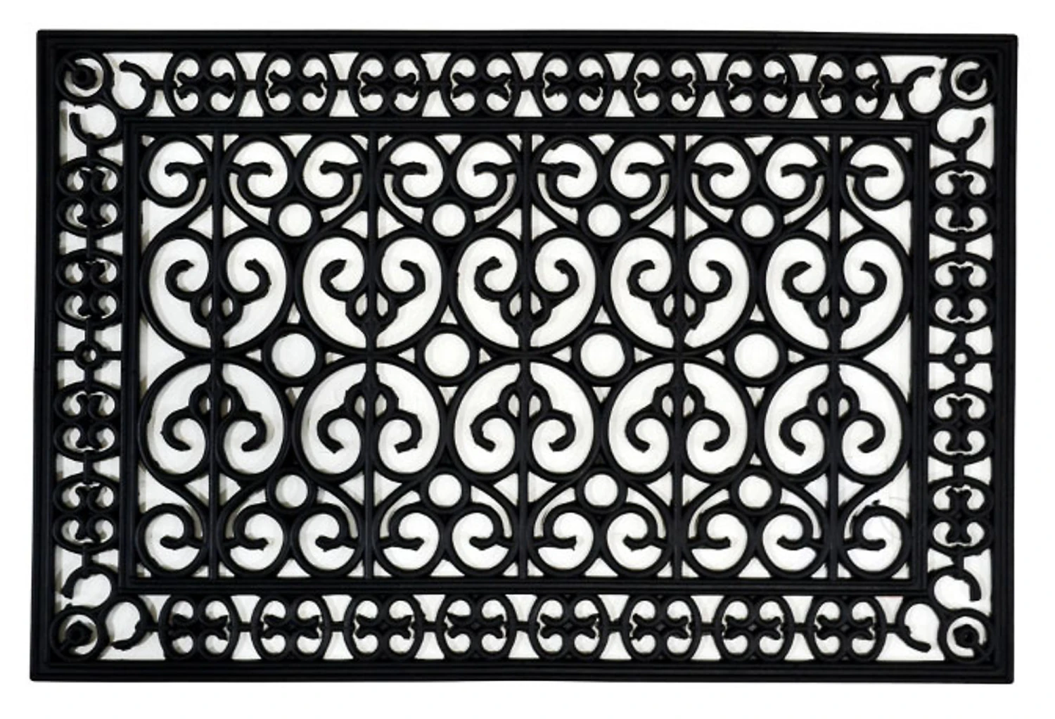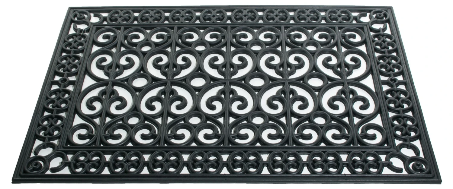 Perfect for welcoming guests at the front or back door, or for poolside safety, this mat made from vulcanized natural rubber and recycled rubber mimics the look of wrought iron with a stylish openwork design.