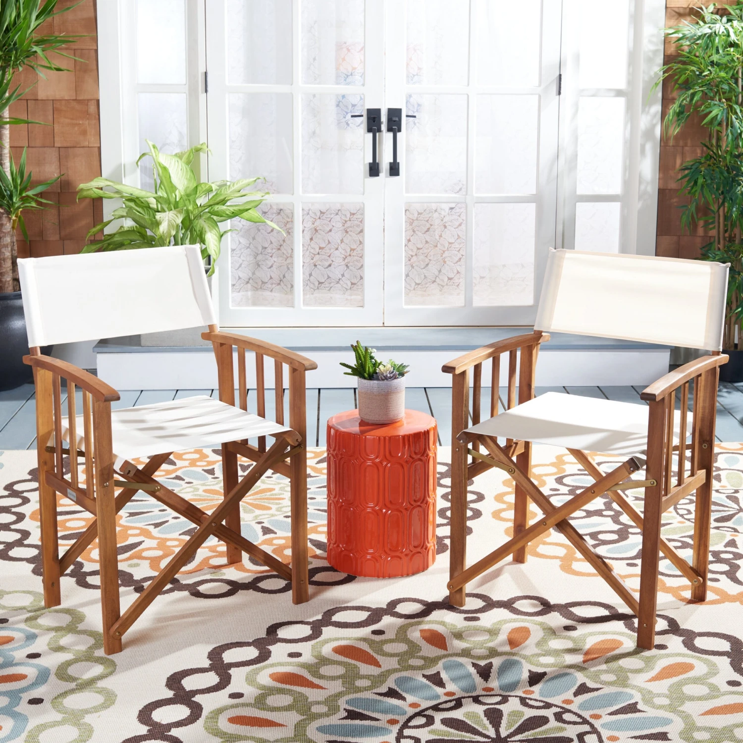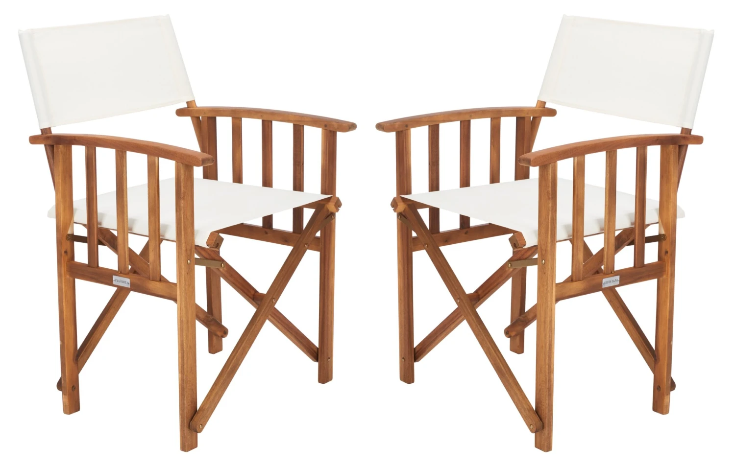 Handsome enough for indoors but durable enough for outdoors, these director chairs are made of sustainable acacia and Textilene, a heavy-duty fade-resistant fabric. The chairs fold for easy storage.