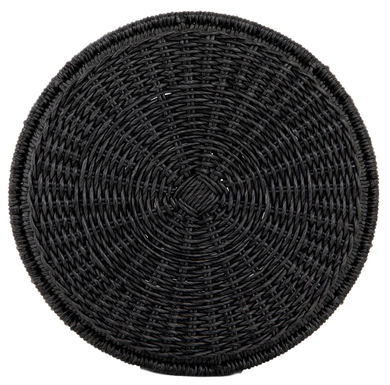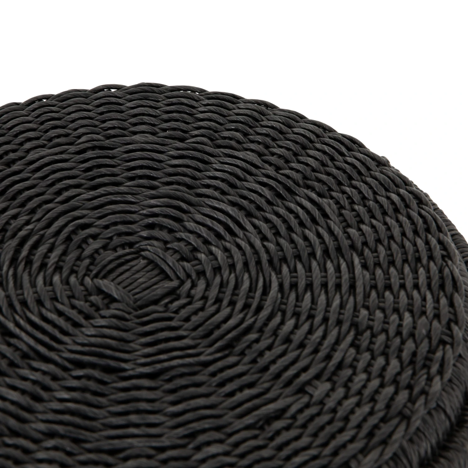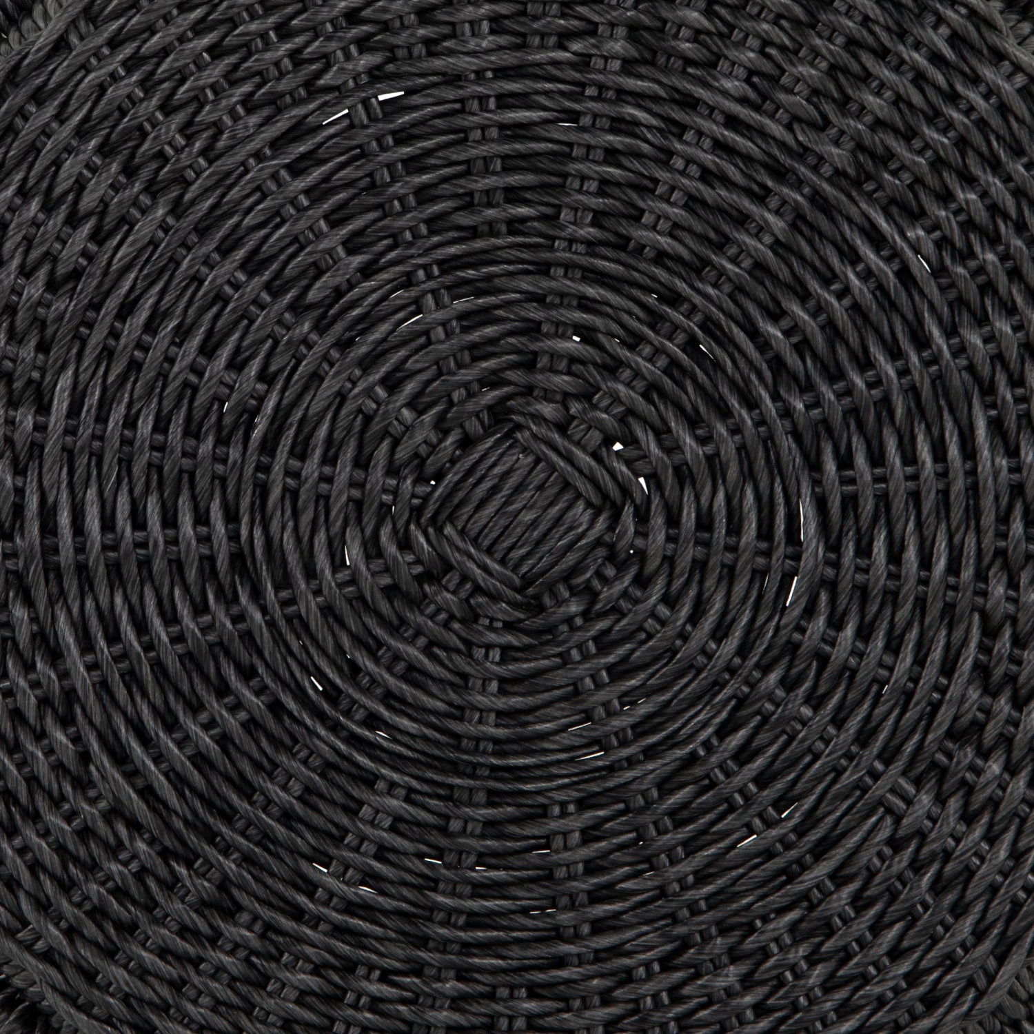 Finished in a deep coal, all-weather wicker beautifully rounds to form a texture-driven end table.