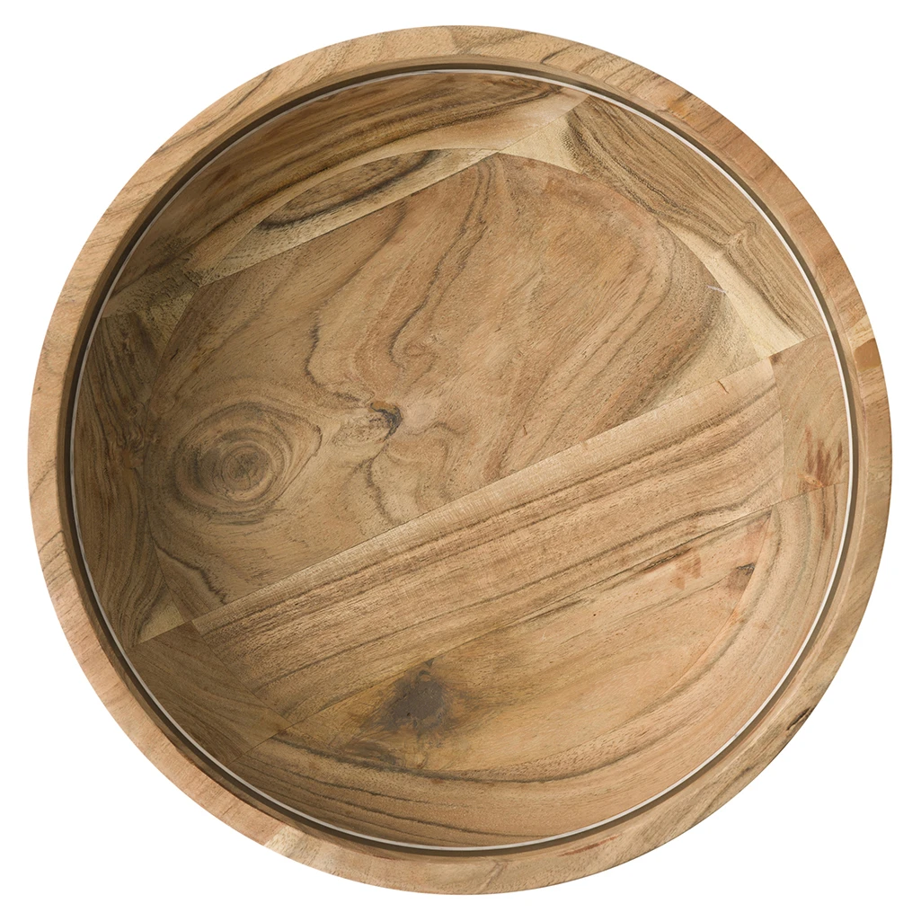 Inlaid with contrasting resin stripes, this serving bowl is crafted of acacia with a swirling, expressive grain.