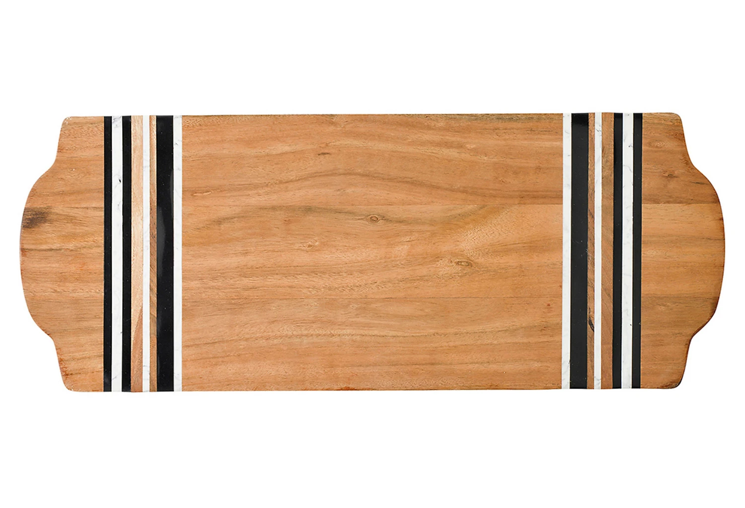 Perfect for presenting guests with your favorite cheese medley, this serving board is crafted of acacia wood and inlaid with hand-marbled resin.