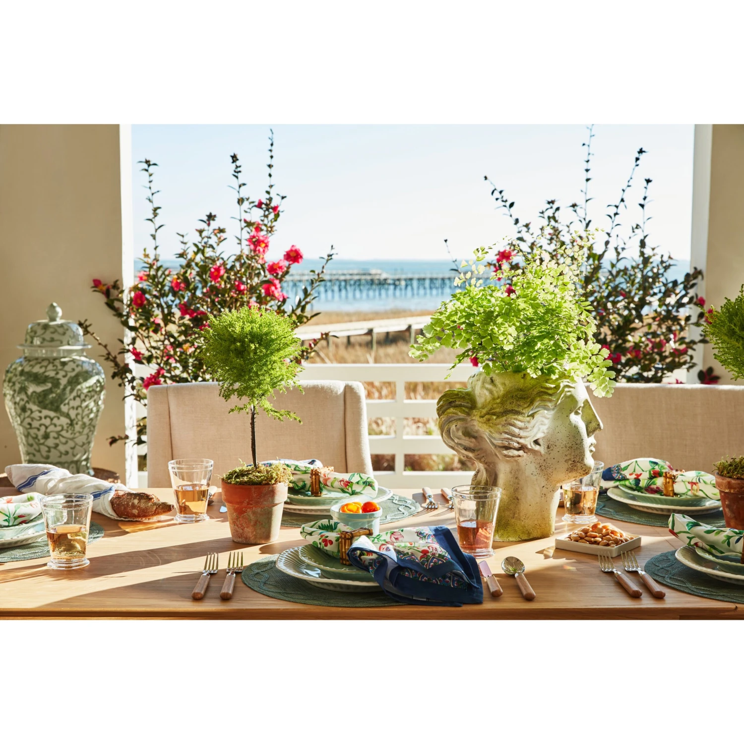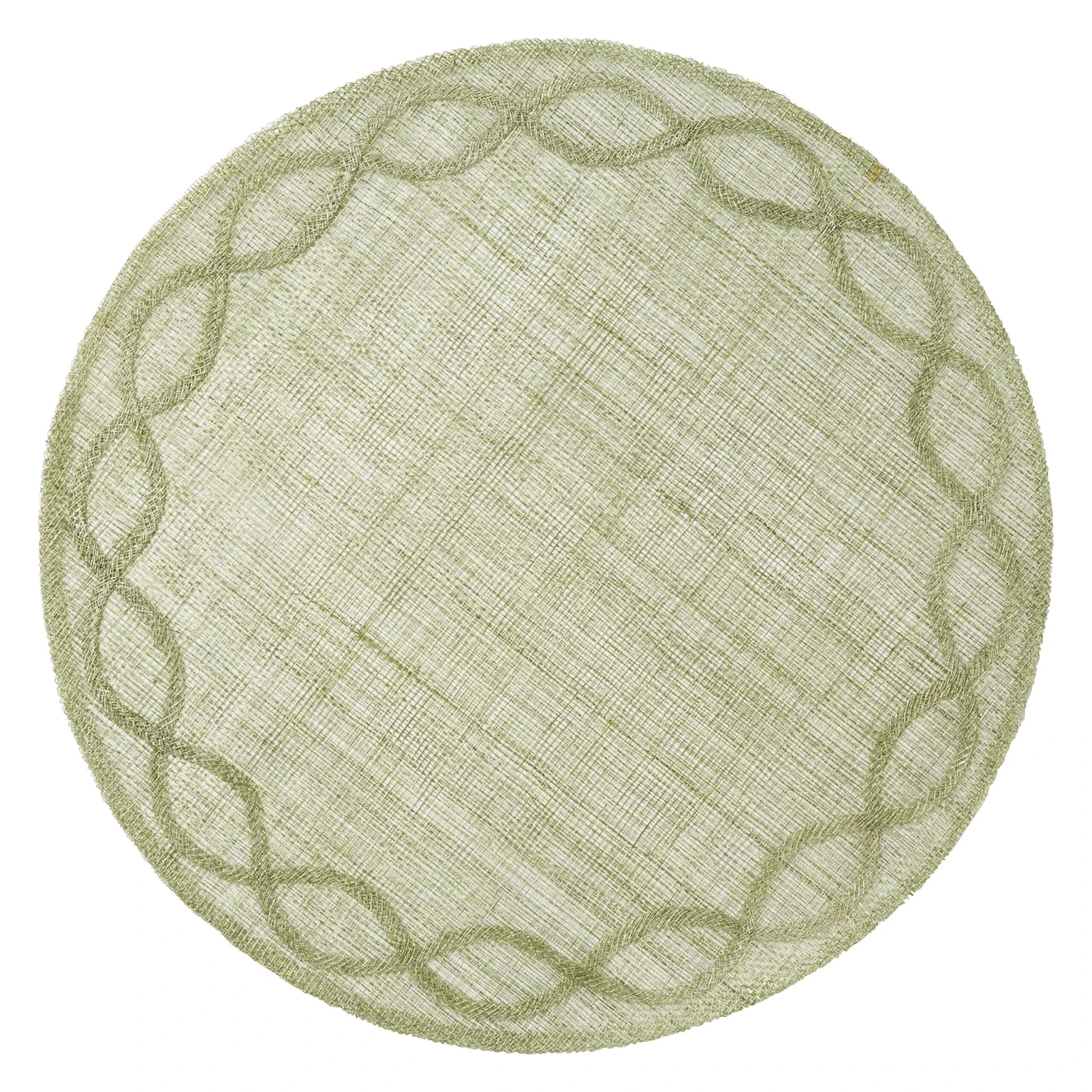 Inspired by the formal gardens of Paris, this place mat features a subtle weave, appliquéd border, and gorgeous pistachio-green hue.