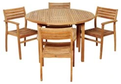 Enjoy alfresco dining on your porch, patio, or deck in comfort and style thanks to this classic set of table and armchairs. Beautifully crafted of solid teak, each piece is FSC-certified and built to last.